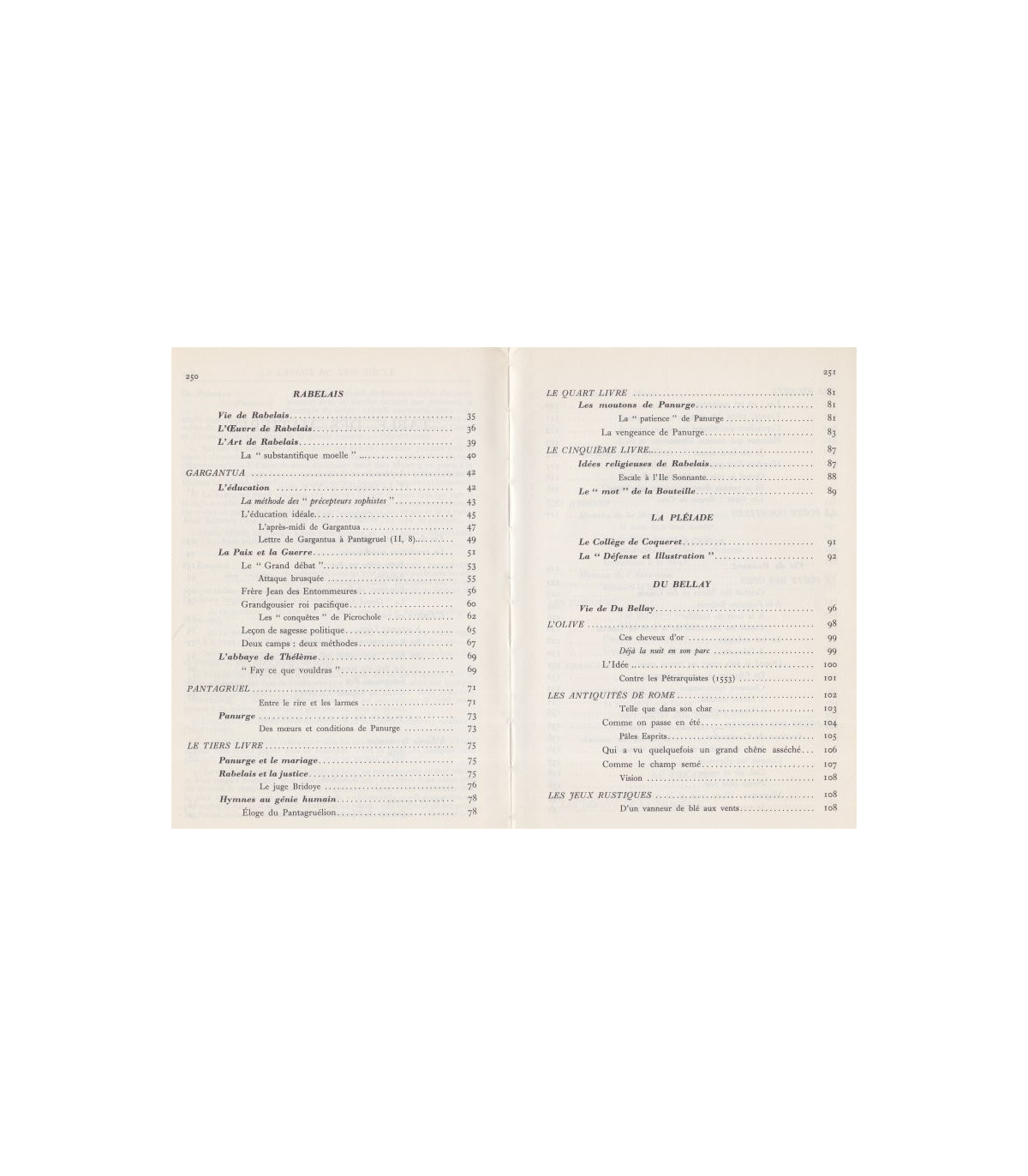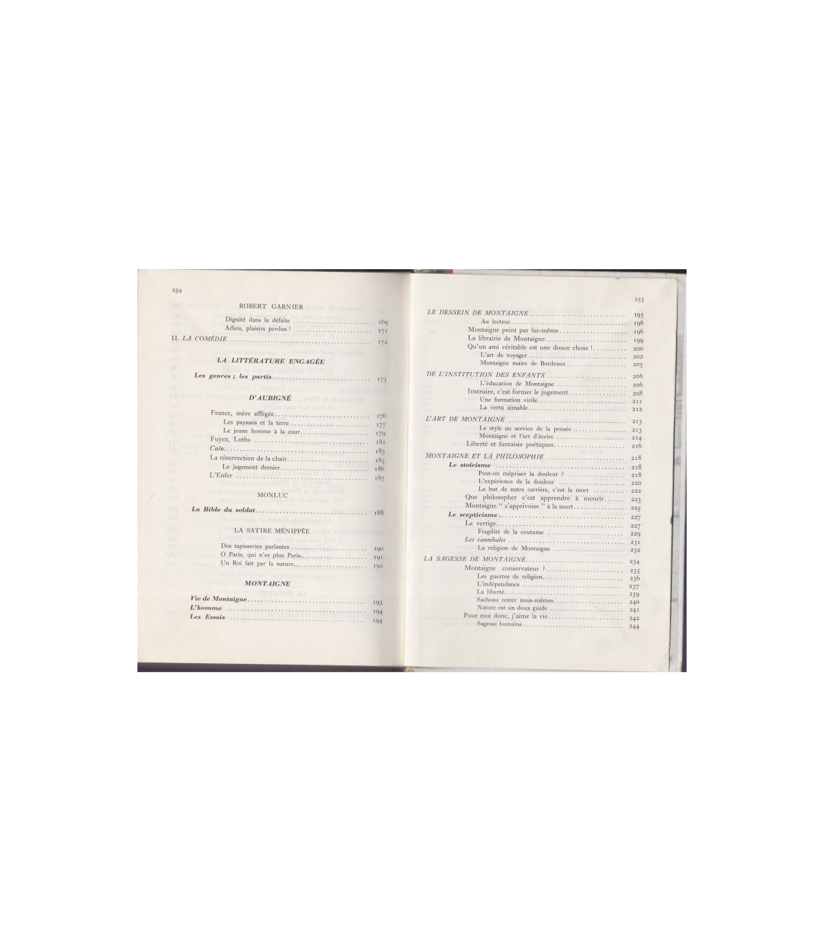 XVIe siècle, les grands auteurs français du programme, tome 2, par André Lagarde et Laurent Michard - Clément Marot : vie de Clément Marot ; la tradition médiévale ; l'Epître en vers.- La poésie de Marot à Ronsard : l'Ecole lyonnaise. Calvin : vie de Calvin. Rabelais : Gargantua ; Pantagruel ; Le Tiers livre ; le Quart livre ; le Cinquième livre. La Pléïade : le collège de Coqueret ; la "défense et Illustration". Du Bellay : l'Olive ; les Antiquités de Rome ; les Jeux rustiques ; les Regrets ; le poète courtisan. Ronsard : le poète des odes ; le poète des amours ; les hymnes ; la Franciade ; les derniers vers. Le théâtre : les débuts de la tragédie ; la comédie. La littérature engagée. D'Aubigné, Monluc, la satire ménippée. Montaigne : le dessein de Montaigne ; de l'institution des enfants ; l'art de Montaigne ; Montaigne et la philosophie ; la sagesse de Montaigne.