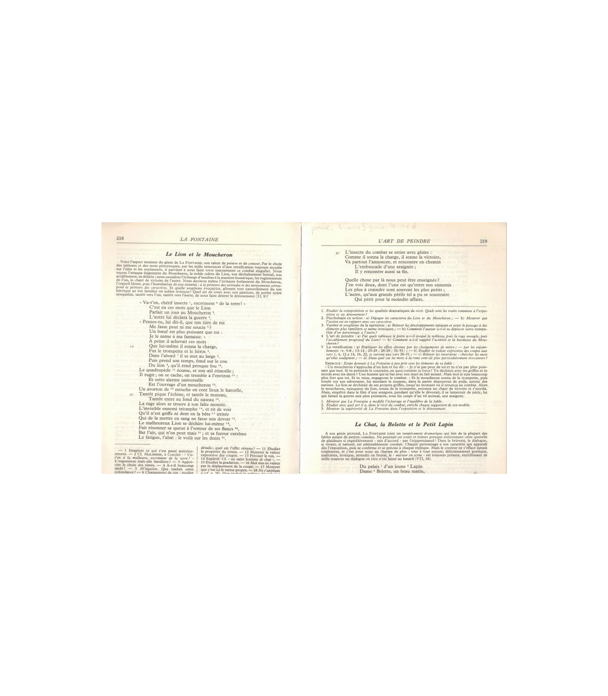 La Fontaine : vie de la Fontaine ; la <Mort et le Bûcheron ; Le lion et le moucheron ; le chat, la belette et le Petit lapin, etc..