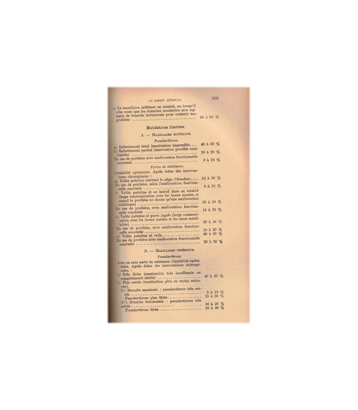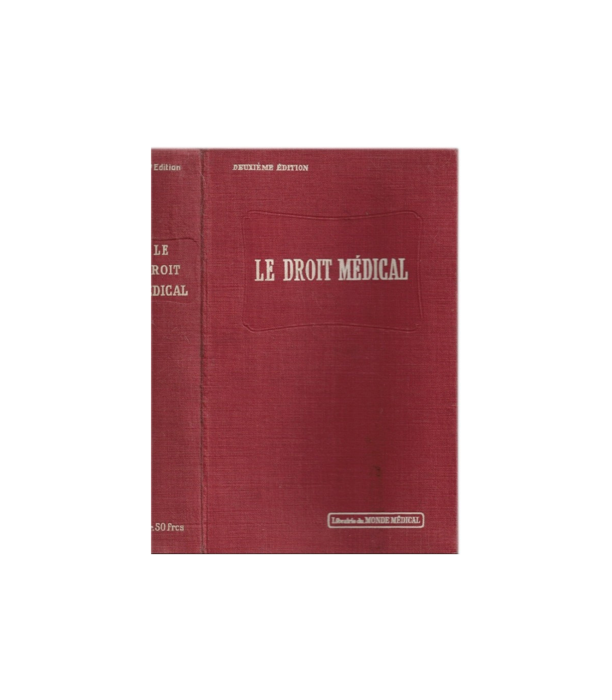 Droit médical, Paul Appleton et Paul Boudin - Exercice de la médecine - responsabilité - expertises - organisation sanitaire publique - accidents de travail et assurances sociales - introduction du professeur Balthazard - L'organisation de la profession : conditions d'exercice de la médecine - cabinet médical et organisations professionnelles - obligations des médecins - prescription, conservation et vente des médicaments par les médecins - expertises médicales - impôts médicaux - responsabilité civile et pénale des médecins - exercice illégal de la médecine et usurpation du titre de médecin - L'organisation sanitaire publique : mesures sanitaires générales - mesures sanitaires - l'Administration sanitaire - l'Administration hospitalière - Protection, assistance et assurances sociales : assistance médicale gratuite - Sociétés et secours mutuels - assistance aux aliénés - assistance aux femmes en couches - assistance aux entrants - assistance aux vieillards, aux infirmes et aux incurables - assistance aux mineurs en cas d'ankylostomiase - accidents du travail et maladies professionnelles - régime des pensionnés de guerre - assurances sociales - Textes législatifs - Formules légales - éditions Librairie du Monde Médical 1939 - 2e édition entièrement revue, complétée et mise à jour - #législation médicale, #exercice de la médecine, #législation médicale 1940, #droit médical 1940, #expertises médicales, #responsabilité médecin, #assurance sociale 1940, #protection sociale 1940, #manuels juridiques, #droit spécialisé, .