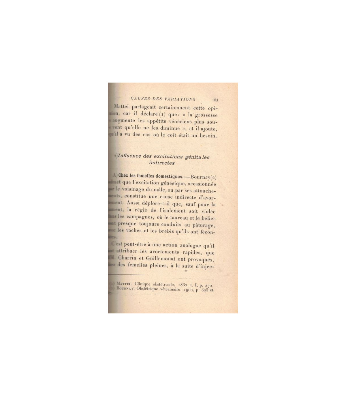 De l'incubation - variations dans la durée de la gestation chez quelques animaux - variations dans la durée de la grossesse - causes des variations dans la durée de la gestation : influences générales mal déterminées ; influence paternelle ; influence fœtale ; influence maternelle ; influence de l'âge ; influences morales - influence des excitations génitales ; influence de l'aération ; influence de la température et de la balnéation ; influences des émissions sanguines ; influences mécaniques ; influence des injections lombaires de cocaïne - De la puériculture intra-utérine : hospitalisation des femmes enceintes dans des services généraux ; repos obligatoire et protection légale des femmes enceintes ; assistance des femmes enceintes à domicile ; sociétés de mutualité maternelle ; des sanatoriums de grossesse -