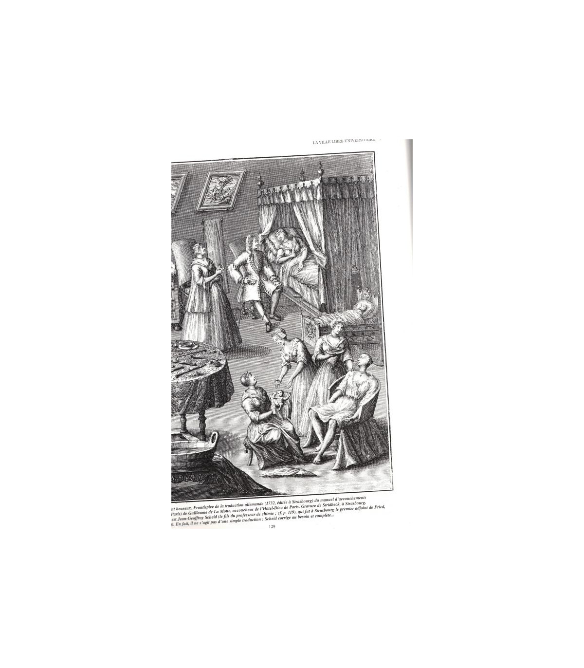 4e période, la ville libre universitaire 1621-1789 : la faculté de médecine dans la ville livre d'Empire, puis ville libre royale ; Fried fonde en 1728 la première école d'accouchements créée au monde ; l'Hôpital Civil et la crise financière du XVIIe siècle ; au XVIIIe siècle, l'hôpital est reconstruit et l'enseignement clinique créé ; l'hôpital militaire de Vauban, un enseignement et une formation cliniques très en avance sur la Faculté ; la pratique médicale en ville au XVIIe et au XVIIIe siècles ; l'art dentaire est enseigné à la Faculté de médecine ; les apothicaires à l'Université -