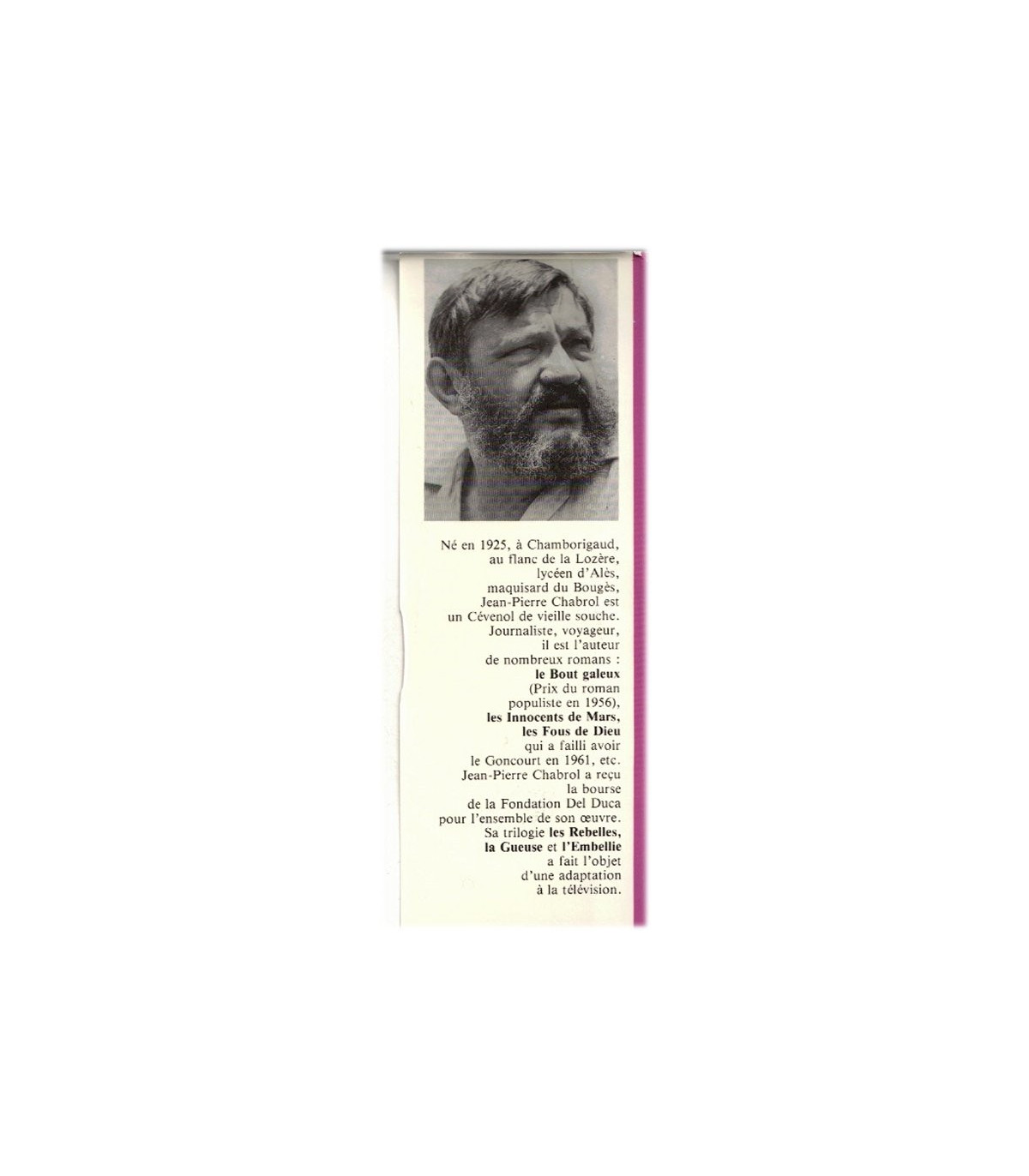 Les rebelles, tome 3, L'embellie, Jean-Pierre Chabrol - roman - Le Front Populaire prend le pouvoir. Le village de Clerguemort a son auberge de jeunesse. Les grèves sur le tas, la semaine de quarante heures, les congés payés... Le peuple se sent pris d'un fougueux élan vers le bonheur. Les Cévennes, pour eux, c'est Tahiti. On les voit venir de partout. Nathan, le Gavroche, Rivette et sa bande de prolos, des étudiants allemands, des instituteurs nîmois, un camelot, des naturistes, tous envahissent le petit pays secret, et les vieux des sommets font connaissance d'un animal singulier : le Parigot. Et dans le bourdonnement des vacances, la guerre civile éclate en Espagne. Les pacifistes sont déchirés. Tout ce qui n'était encore que discussions devient affrontement et, bientôt, tragédie. L'été 1936, rouge et or, sang et soleil; baigne dans le temps des loisirs et patauge dans la première des guerres modernes. Jusqu'au sacrifice : la mort du premier nazi sur la terre cévenole. éditions France Loisirs, 1978. #Front Populaire, #congés payés, #vacances Front Populaire, #guerre d'Espagne, #luttes ouvrières, #Cévennes, #Lozère, #Saint-Andéol-de-Clerguemort, #roman historique.
