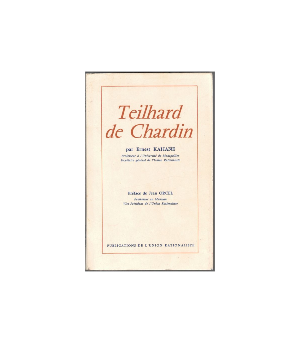Teilhard de Chardin, Ernest Kahane, Secrétaire général de l'Union rationaliste - préface de Jean Orcel -
