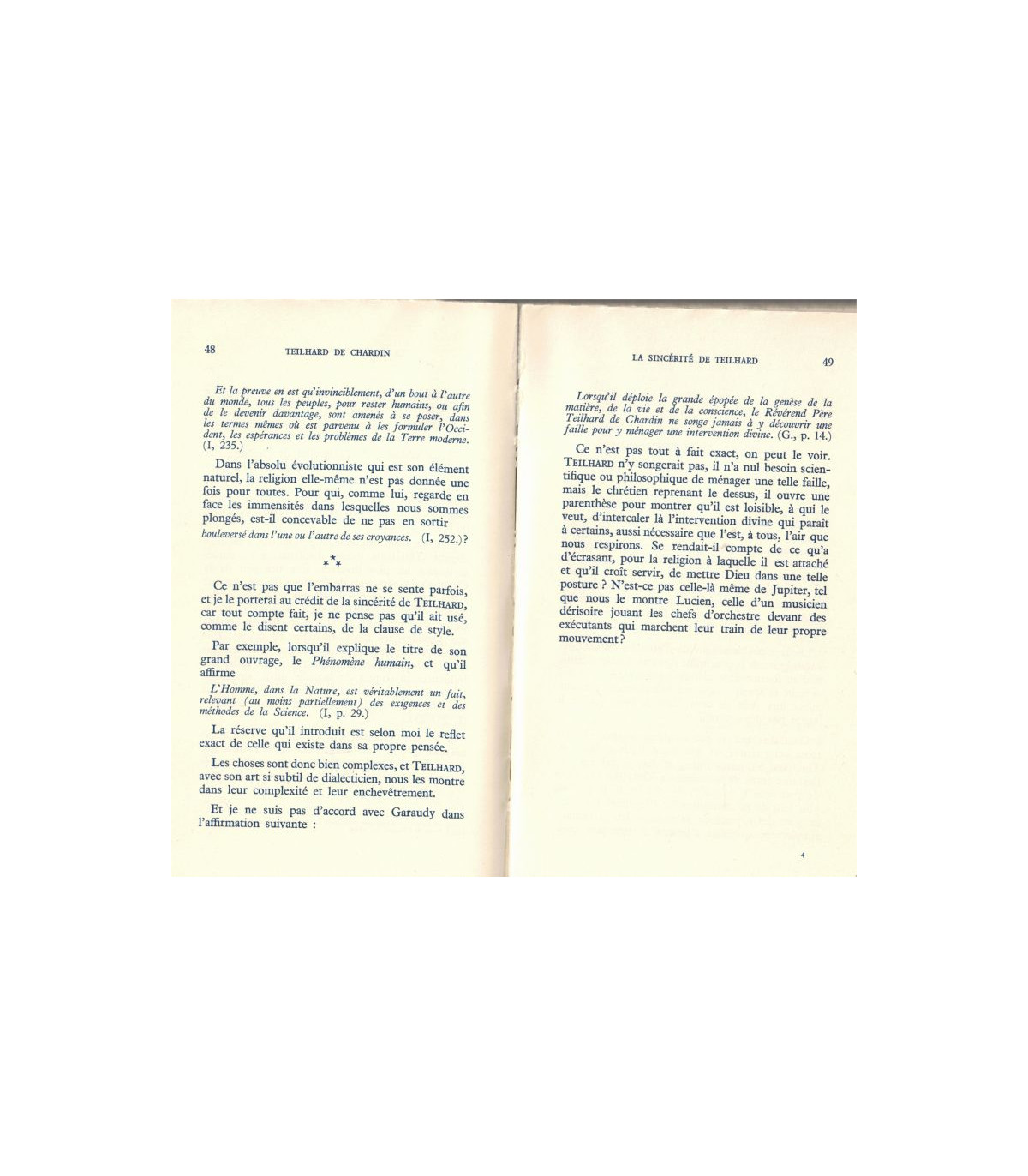l'homme et l'œuvre - la thèse de Teilhard - Teilhard écrivain - la sincérité de Teilhard - la morale de Teilhard - la dialectique chez Teilhard - Teilhard et le transformisme - le finalisme de Teilhard - Teilhard et l'équilibre intérieur - image de Teilhard - annexe, de l'Alpha à Oméga -