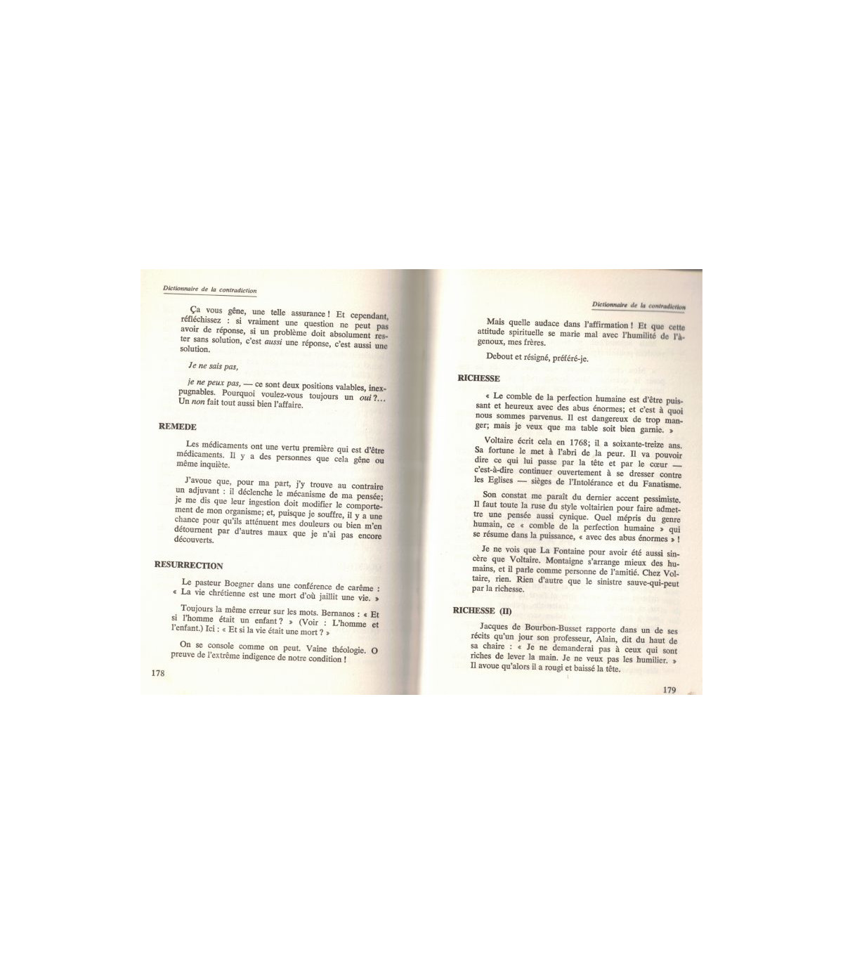 Dictionnaire de la contradiction, Maurice Toesca - collection Culture et Humanisme -