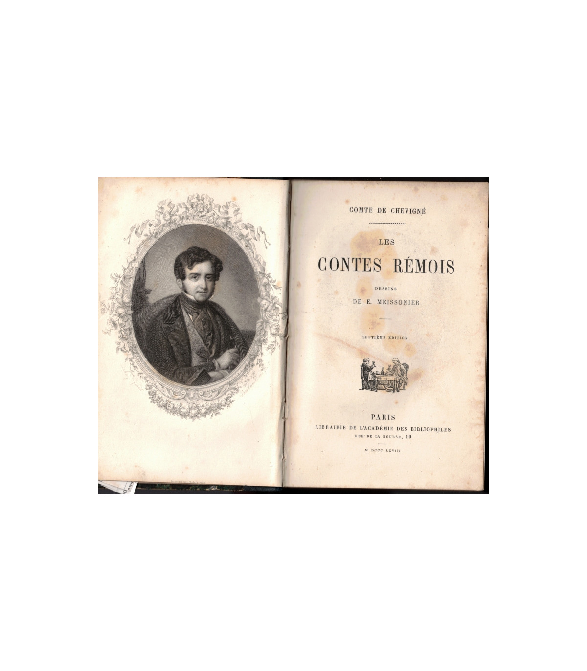 Les contes rémois, Comte de Chevigné - dessins de E. Meissonier - portrait de l'auteur gravé par Delay. 56 contes et épilogue.