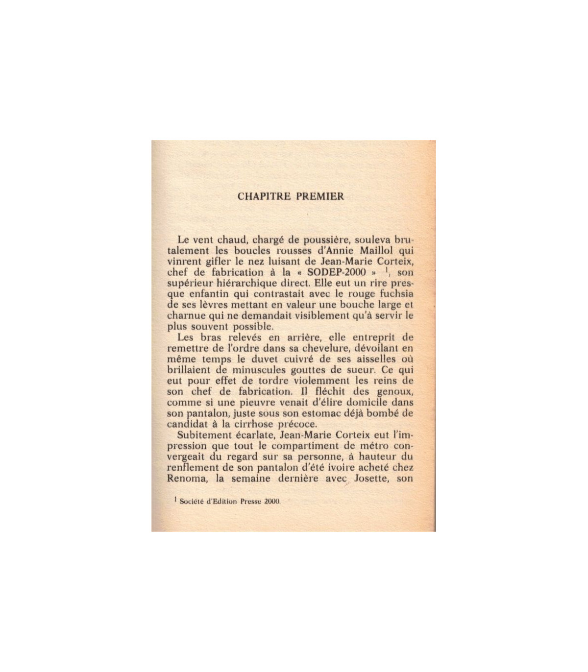 Jean-Marie Corteix la sentit glisser le long de la paroi du wagon et s'accroupir, engloutie immédiatement par la masse humaine des heures de pointe. L'instant d'après, le bas-ventre de Corteix connut un délicieux martyre.