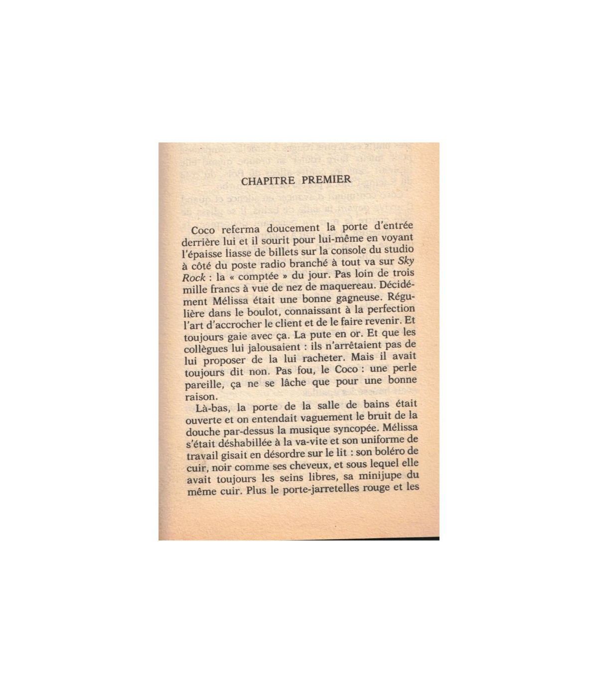 Encore cinquante mètres, encore quarante, plus que trente, plus que vingt! Melissa courait à perdre haleine dans la nuit glacée du bois de Boulogne. Elle seule avait reconnu les phares oblongs, les seuls phares qui puissent être ceux du cabriolet BMW de Coco. Elle allait le retrouver son mac, son julot, son dieu vivant au membre inépuisable, un dieu incroyablement doux et attentif quand il lui faisait l'amour.