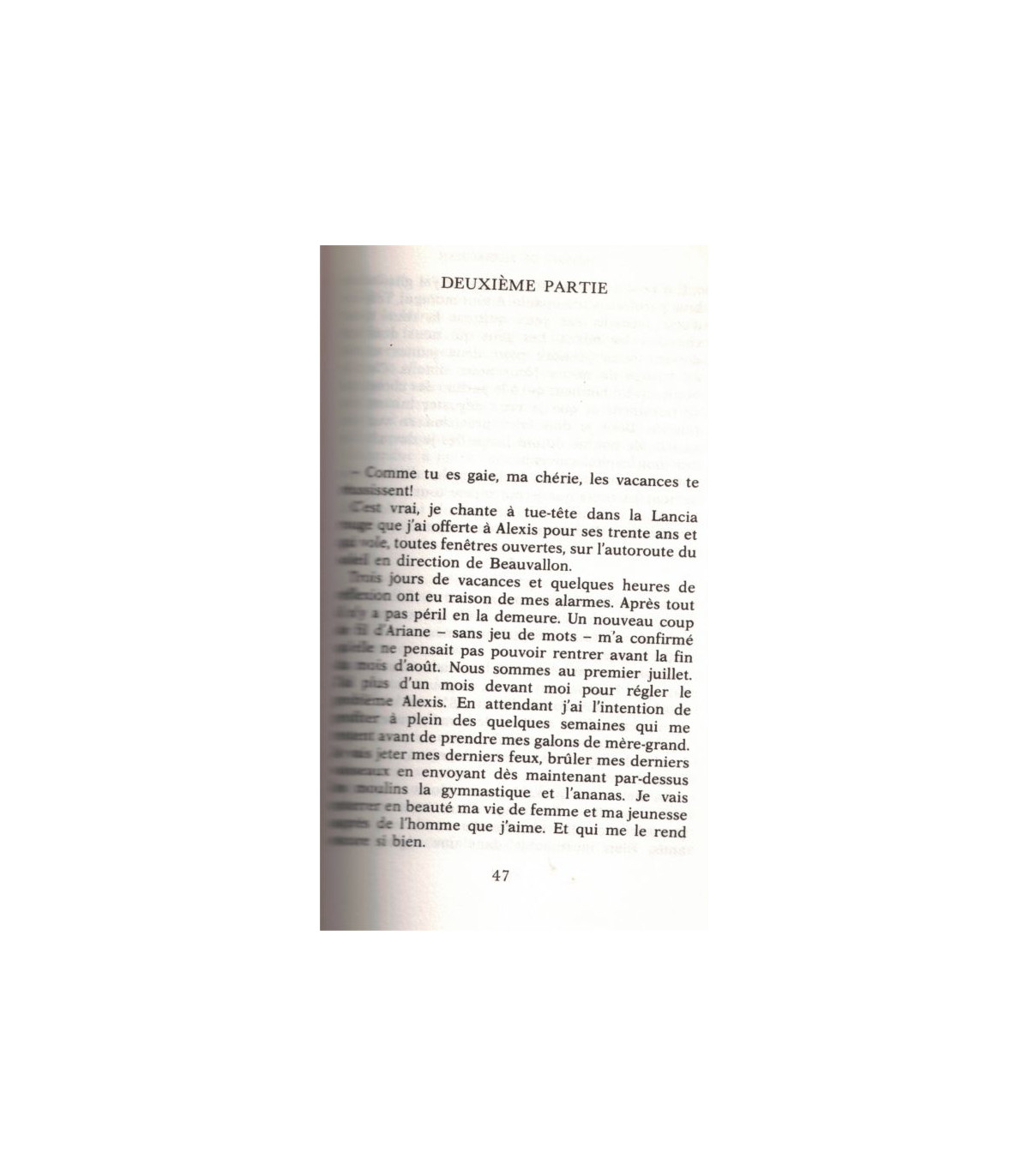 Autour de moi des gens vont et viennent. Jeunes pour la plupart, à demi nus, bronzés, joyeux. D'autres demeurent allongés sur le sable à l'ombre des parasols. Deux à deux le plus souvent. Quelques-uns encore esseulés - l'arrivage de ce matin, le mien. Rien ici qui puisse m'inquiéter."