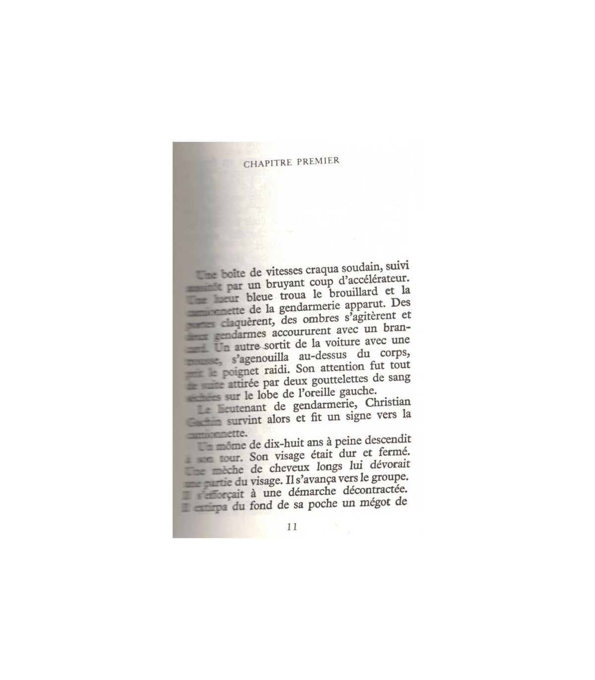 Il gisait sur le bord de la route, une main tendue vers son casque, comme s'il avait cherché à le rattraper au vol. Un casque blanc avec une large raie noire au milieu. Aucune trace de choc ou de froissement sur son blouson de cuir. Ni de déchirures apparentes sur son corps. Une pellicule de rosée blanche révélait que l'accident s'était produit plus tôt dans la nuit.