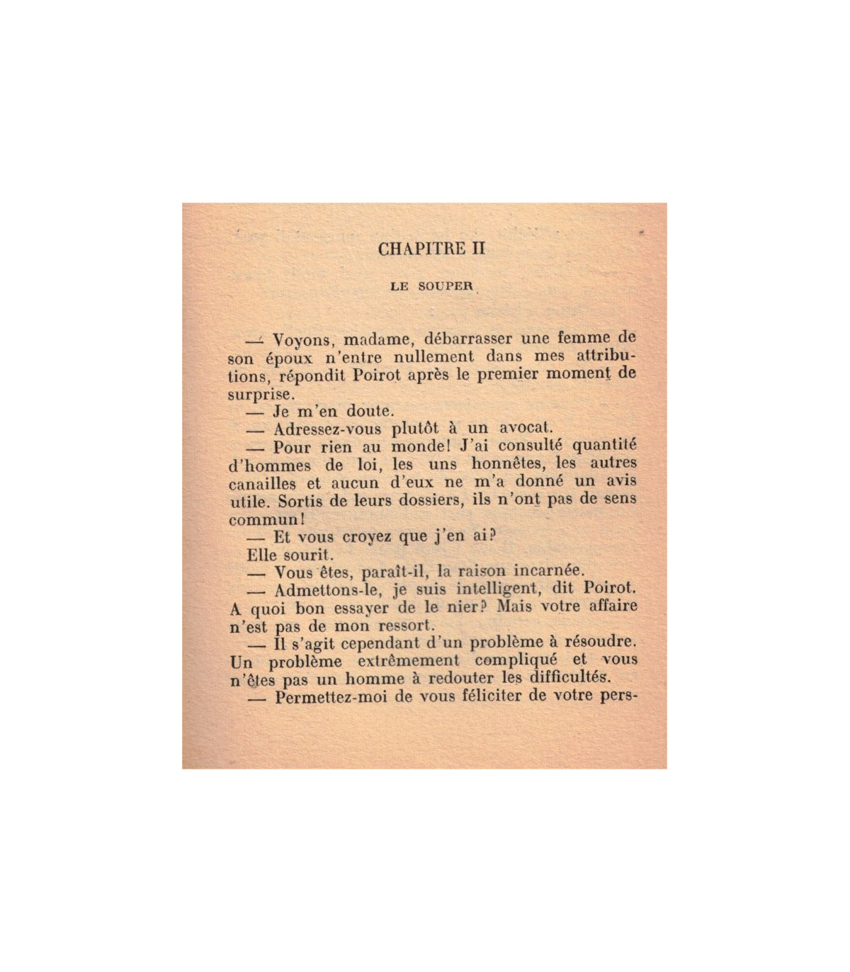 Au cours du procès, le nom de mon ami Hercule Poirot n'a jamais été cité. Ce fut, il convient de l'ajouter, selon son propre désir : il préféra demeurer dans l'ombre. Si les lauriers furent décernés à d'autres, c'est qu'il le voulut bien.