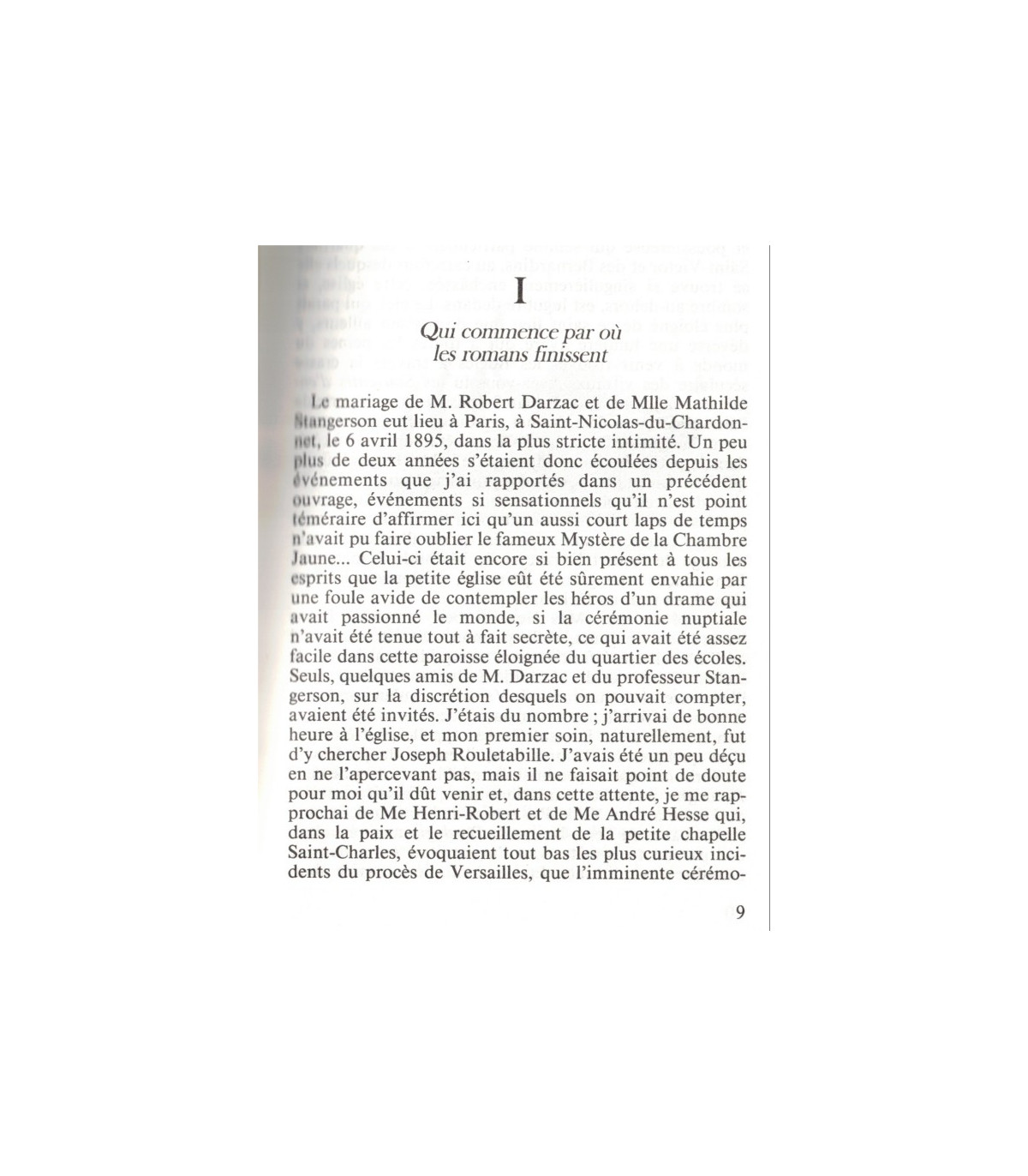 Le parfum de la dame en noir, par Gaston Leroux - illustrations de Philippe Munch - Collection Folio Junior - Depuis que le Mystère de la Chambre Jaune a été élucidé par Rouletabille, le célèbre reporter, rien ne semble plus s'opposer au mariage de Mathilde Stangerson et de Robert Darzac. Mais celui-ci est à peine conclu que le bonheur de Mathilde est gravement menacé : de vieux démons resurgissent du passé, un homme disparaît, un autre est assassiné. Frédéric Larsan, ce criminel que tout le monde croyait mort, est bel et bien ressuscité et n'a pas fini de semer la terreur !