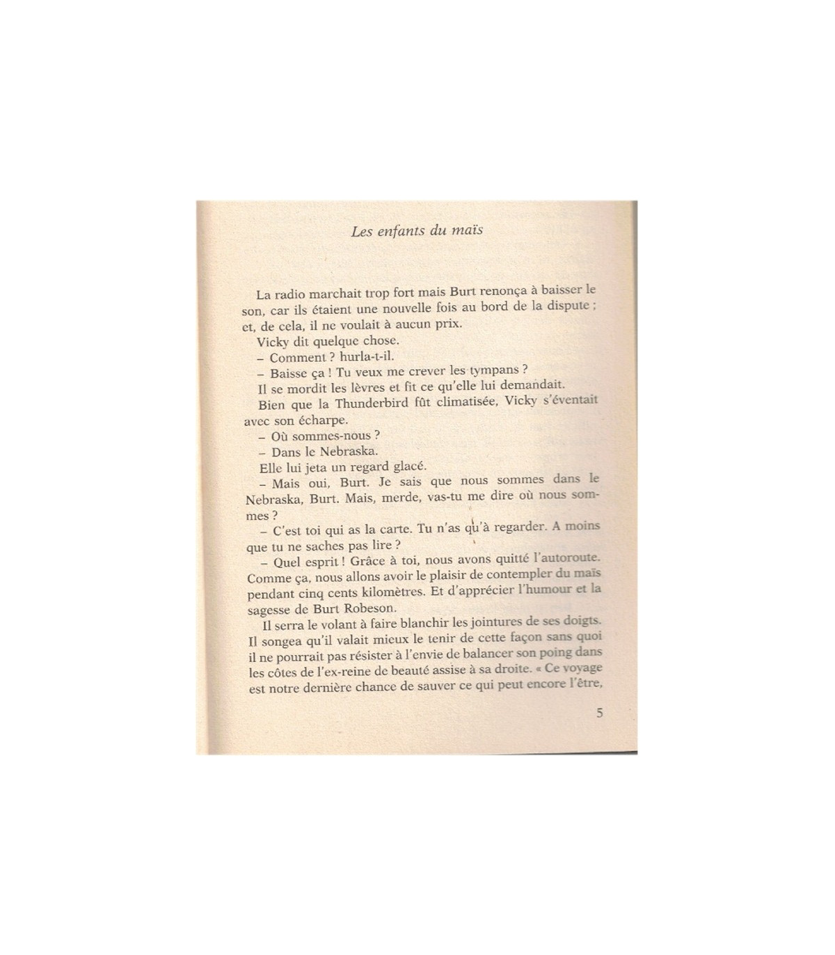 Danse macabre 4, Les enfants du maïs, et autres nouvelles, Stephen King - Night Shift, roman traduit de l'américain - Il est des lieux maudits. Jerusalem's Lot est de ceux-là. Lugubre en diable. Village sinistre pour ne pas dire sinistré depuis qu'il a brûlé, un soir d'automne. Mais Gerard Lumley ne peut savoir. Surpris par une tempête de neige, il part chercher du secours. Laisse dans sa voiture une femme et enfant. Les croit en sécurité. Faux ! Les vampires attaquent même dans le blizzard. Il est des êtres malfaisants. Quand bien même ils auraient l'air radieux de ceux qui aiment pour la première fois. On peut apporter des fleurs et frapper dans l'ombre ! Il est des choses folles. Ce dieu étrange et vert. Dieu du maïs, sénile et jaloux, qui transforme les enfants en démons, plane comme un mauvais sort, et tue. Histoires diaboliques, comme un reflet troublant de l'univers de Stephen King. éditions Librio, 1998. #horreur, #frayeur, #suspense, #démons, #fantastique, #Librio