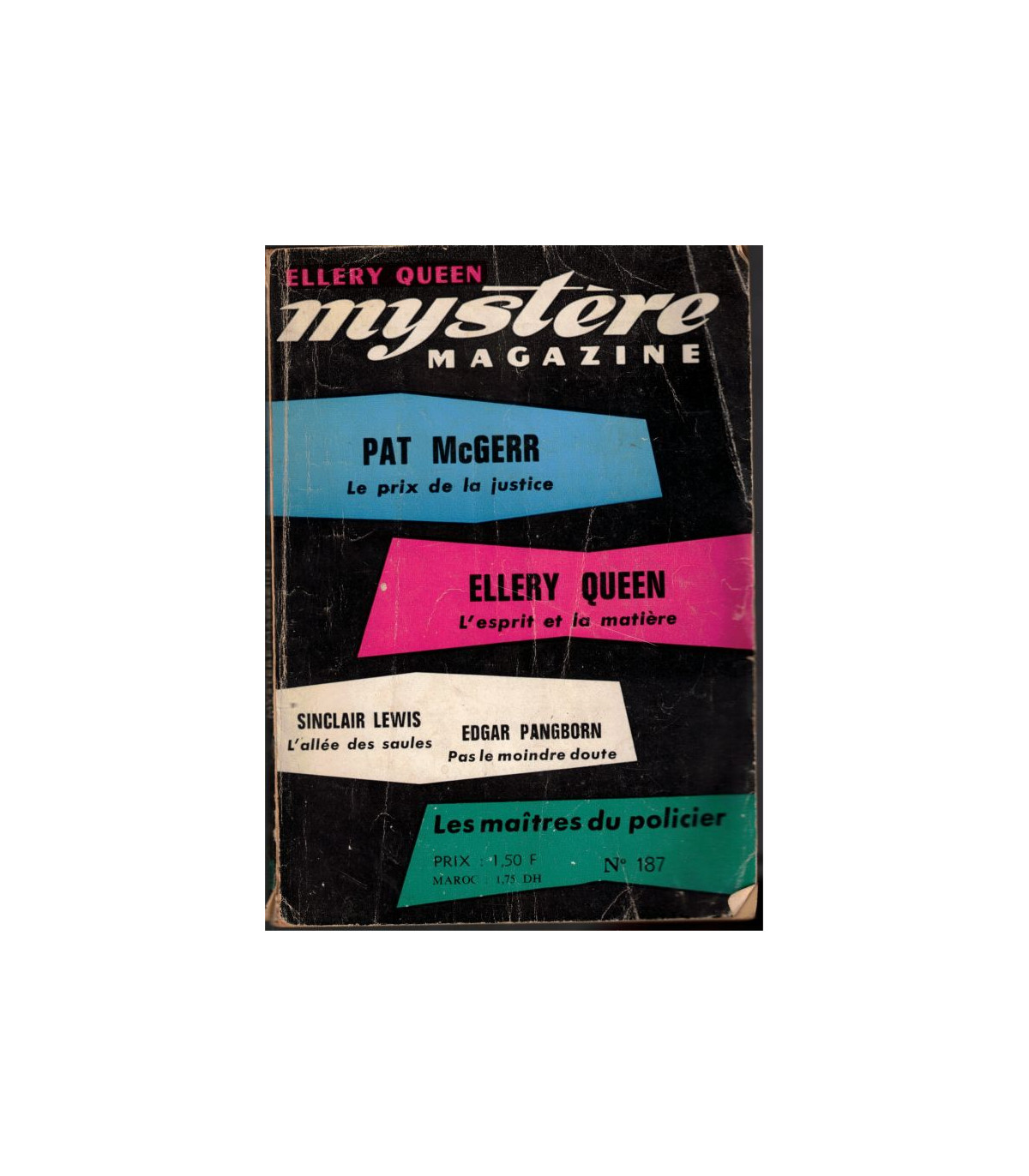 Mystère magazine Ellery Queen N°187 août 1963 -, Pat McGerr, Ellery Queen, Sinclair Lewis, Edgar Pangborn, romans policiers,