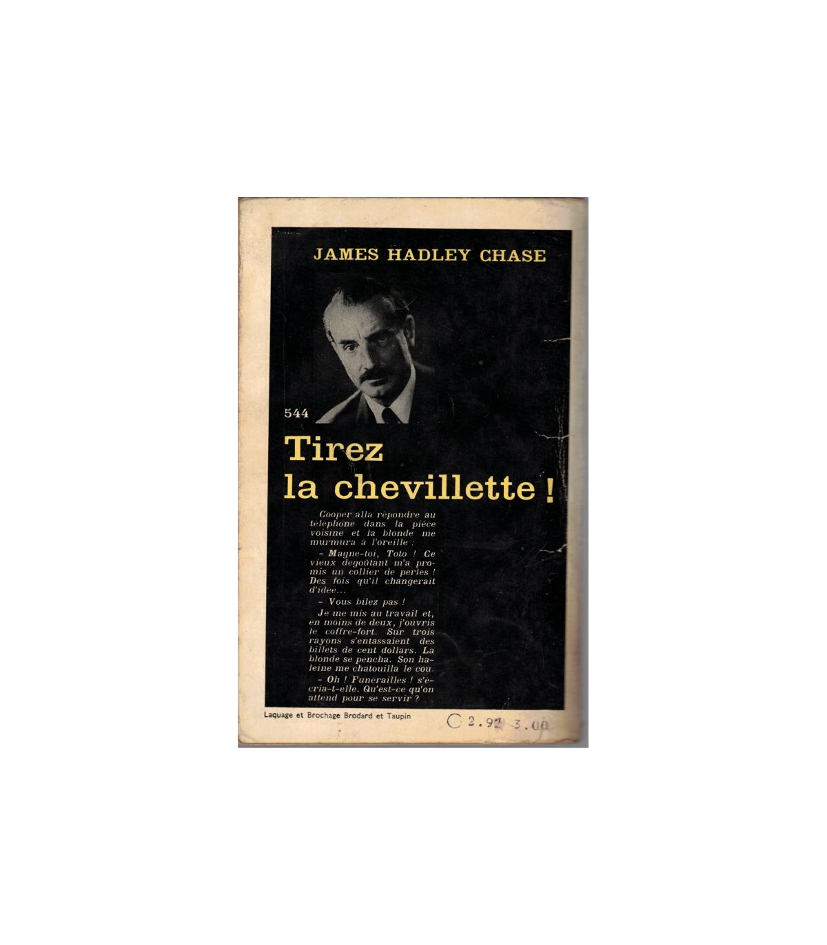 Tirez la chevillette, James Hadley Chase - Collection Série Noire, dirigée par Marcel Duhamel - Come easy, go easy, roman traduit de l'anglais -