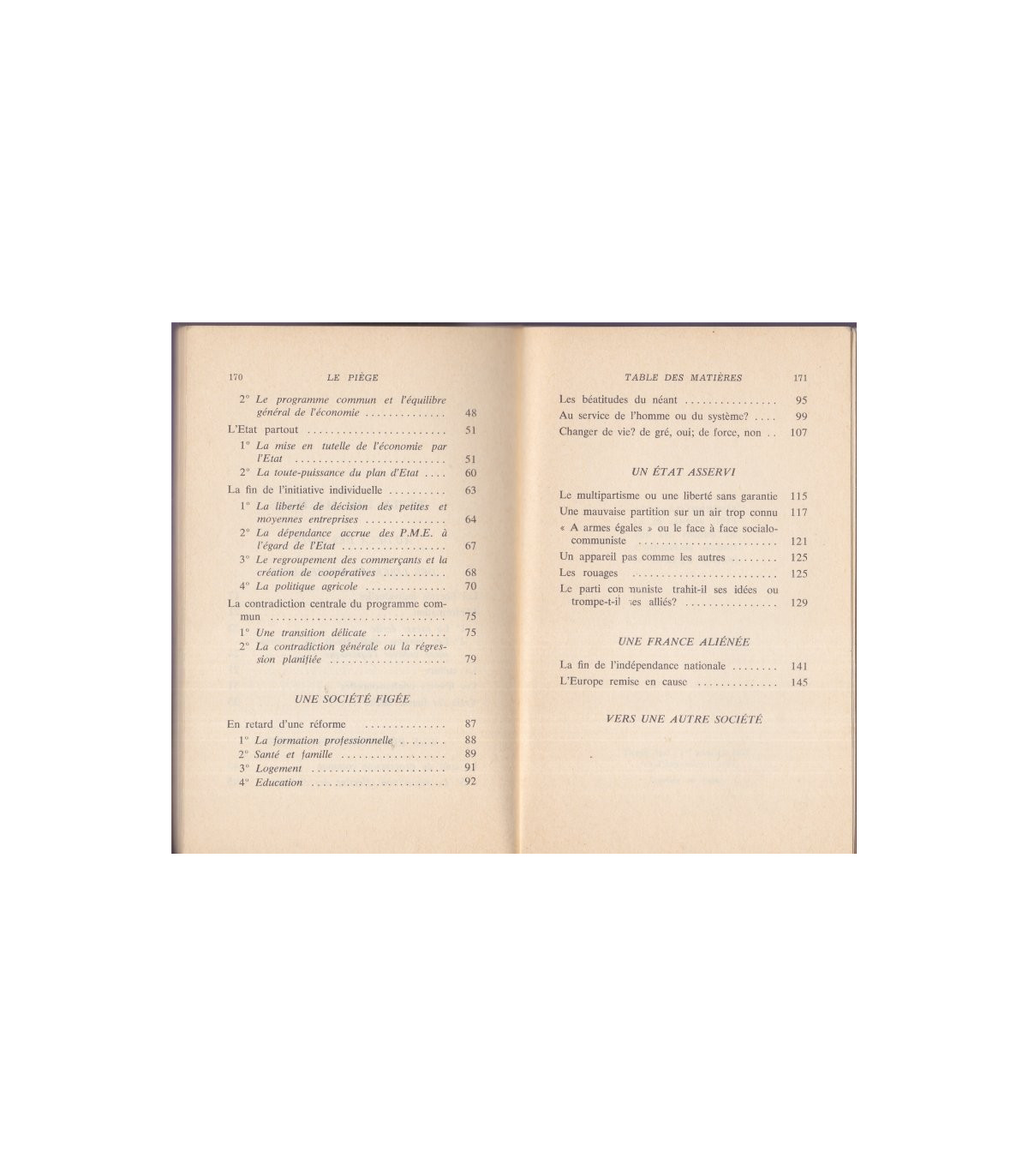 Le piège, comment lire le programme commun, par Jean-Pierre Soisson, Bernard Stasi et Olivier Stirn - Des libertés surveillées - une régression planifiée - une société figée - un état asservi - une France aliénée - vers une autre société.