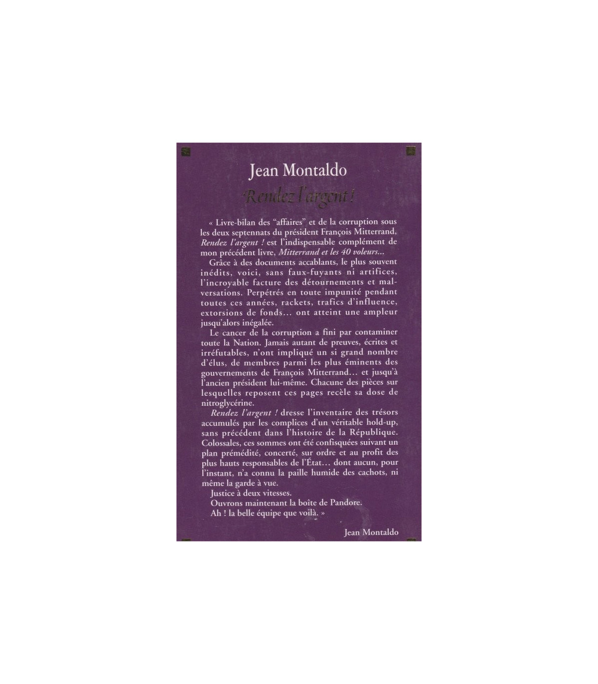 Rendez l'argent, Jean Montaldo, 1995 - pamphlet politique, parti socialiste, Mitterrand