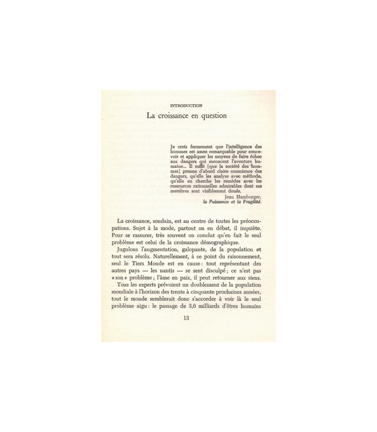 Que maîtriser la croissance, cela veut dire éviter la surpopulation, parer à l'épuisement anarchique des ressources naturelles, lutter contre les pollutions, contrôler la spirale d'inflation écologique où se combinent population et production.