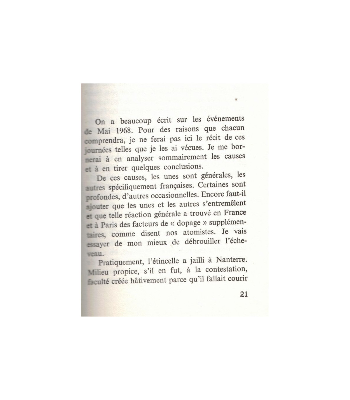 "J'étais en train d'écrire un livre lorsque le référendum du 27 avril 1969 et l'élection présidentielle me détournèrent de l'achever et de le publier.. Les pages qui suivent sont donc inachevées, (...) à l'état brut."