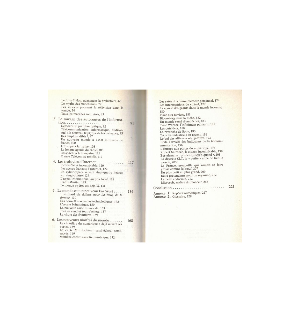 Le XXIe siècle sera celui de la communication ou ne sera pas. Multimédia, autoroutes de l'information, pay-per-view, video-on-demand: ces mots vides de sens aujourd'hui sont la culture de demain. La bataille pour la conquête de l'information, dans l'air avec les satellites, sous terre avec le câble, dans les foyers avec la télévision ou le micro-ordinateur, a commencé.