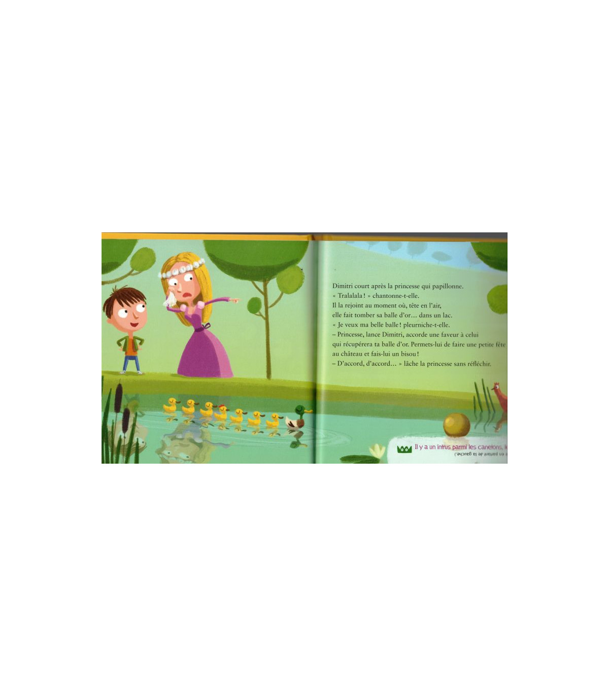 Si une princesse perd un jour sa balle d'or dans un puits, soyez certain que Dimitri le gentil se précipitera à l'intérieur de son livre de notes pour lui porter secours. Mais une drôle de grenouille est déjà là. Et on dirait bien qu'elle espère un bisou de la princesse! Il leur faudra beaucoup d'énergie à tous les deux pour qu'elle accorde enfin toute son attention à cette drôle de demande.