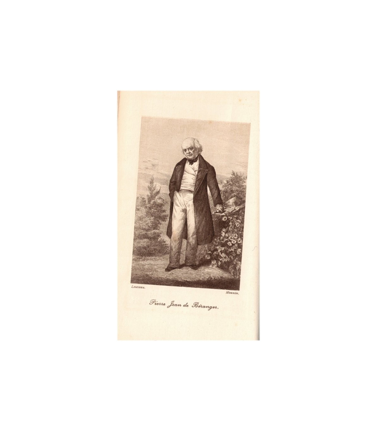 Les chansons de Béranger, Pierre Jean de Béranger - livre petit format avec une belle reliure dos cuir - Livre de la collection Galla - préface du Comte Serge Fleury (Noël Ramère) - Les bénédictions - le bonheur - les fous - le voyage imaginaire - les étoiles qui filent - le chapelet du bonhomme - l'oiseau fantôme - les quatre pages historiques - les voyages - les nègres et les marionnettes - le postillon - la prisonnière - mon jardin - la bonne vieille - souvenirs d'enfance - le vilain - les feux follets - le vieux vagabond - la nostalgie - le Juif Errant - les hirondelles - la pauvre femme - mon habit - les contrebandiers - le chant du Cosaque - le retour dans la Patrie - adieux à la campagne - l'orphéon - les orangs-outangs - le chasseur - le roi d'Yvetot - conseil aux Belges - le feu du prisonnier - à mes amis - le suicide - à M. de Chateaubriand - vieux habits, vieux galons - les escargots - le convoi de David le tombeau de Manuel - mes craintes - le nouveau Diogène - les échos - l'épée de Damoclès - une idée - le violon brisé - les souvenirs du peuple - le vieux caporal - les enfants de la France - le vieux sergent - le cheval arabe - le vieux drapeau - adieu chanson - le champ d'asile - les deux cousins - notre coq - l'aigle et l'étoile. Ouvrages à consulter, bibliographie.