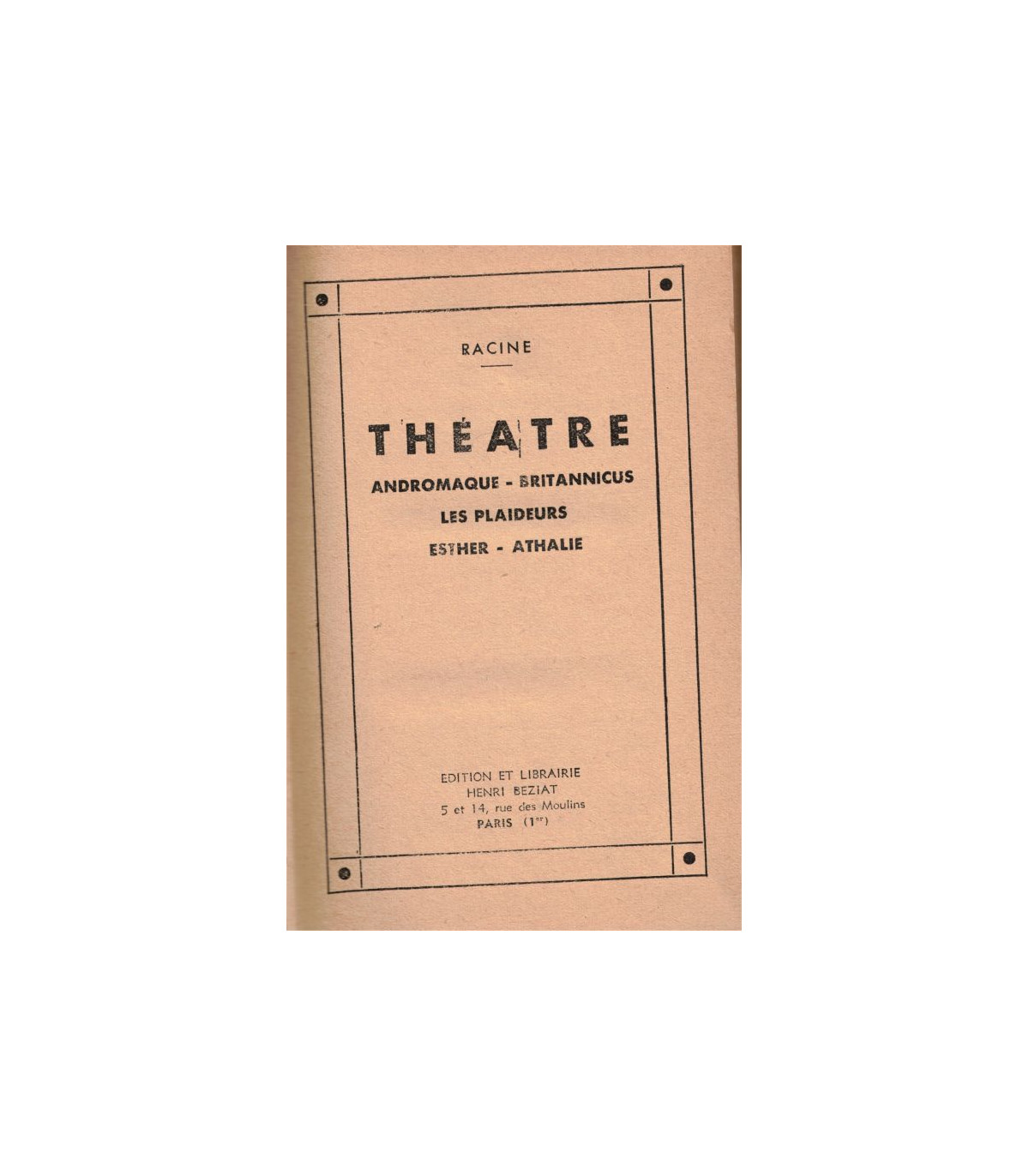 éditions Libraire Henri Beziat, (sans date vers 1930). #Andromaque, #Briannicus, #Les Plaideurs, #Esther, #Athalie, #théâtre de Racine, #tragédie de Racine, #comédie de Racine, #théâtre, #théâtre classique, #Jean Racine, #tragédiens, #anthologie théâtre, #écrivains XVIIe siècle, #littérature XVIIe siècle,