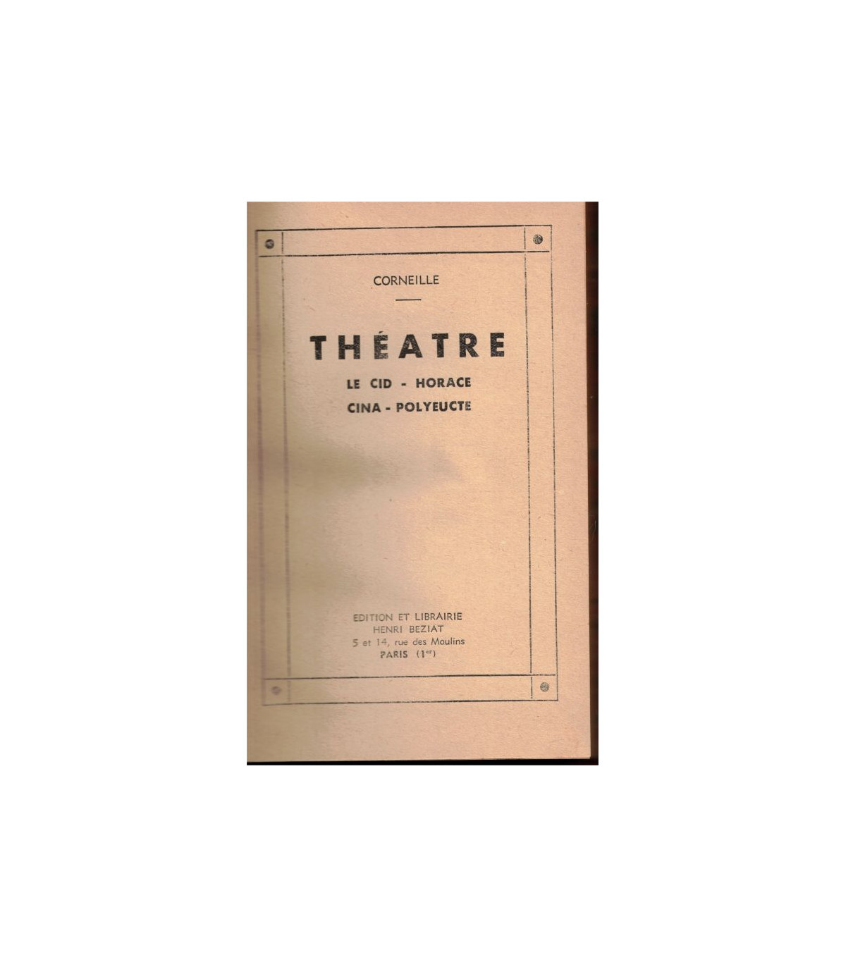 éditions Libraire Henri Beziat, (sans date vers 1930). #Le Cid, #Horace, #Cina, #Polyeucte, #théâtre de Corneille, #tragédie de Corneille, #théâtre, #théâtre classique, #Pierre Corneille, #tragédiens, #anthologie théâtre, #écrivains XVIIe siècle, #littérature XVIIe siècle,