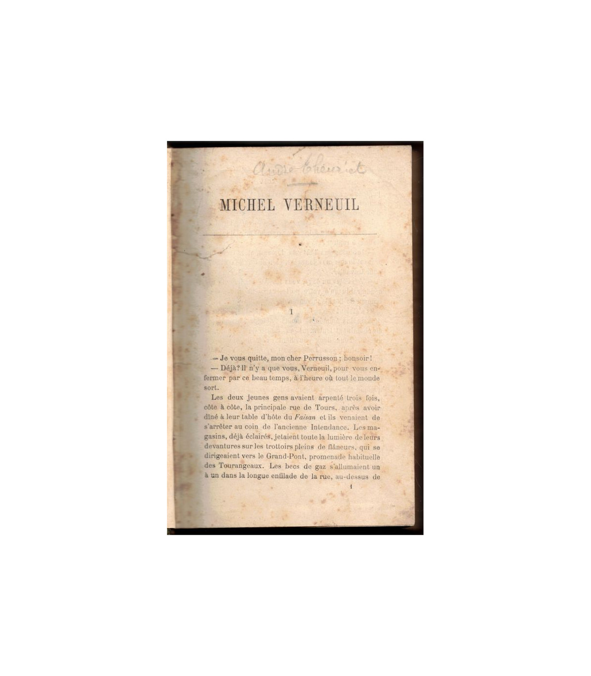 Les deux jeunes gens avaient arpenté trois fois, côte à côté, la principale rue de Tours, après avoir dîné à leur table d'hôte du Faisan et ils venaient de s'arrêter au coin de l'ancienne Intendance. Les magasins, déjà éclairés, jetaient toute la lumière de leurs devantures sur les trottoirs pleins de flâneurs, qui se dirigeaient vers le Grand-Pont, promenade habituelle des Tourangeaux. Les becs de gaz s'allumaient un à un dans la longue enfilade de la rue, au-dessus de laquelle les lignes régulières des façades parallèles découpaient une bande d'azur brunissant dans un ciel d'été très pur.