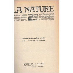 La nature, revue des sciences et de leurs applications à l'art et à l'industrie - volume relié 1921, premier semestre - du N°2440 du 8 janvier 1921 au n°2464 du 25 juin 1921 -