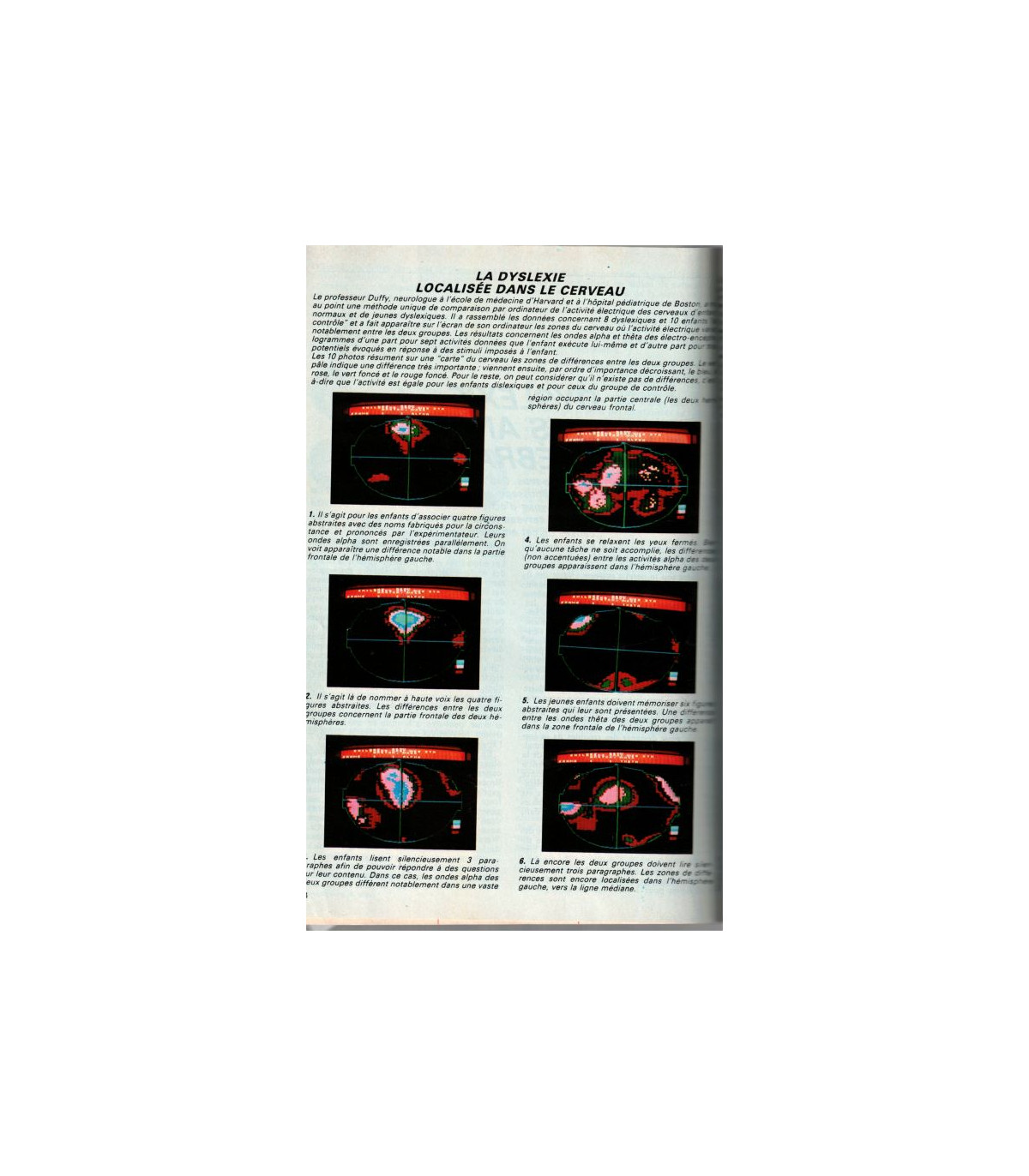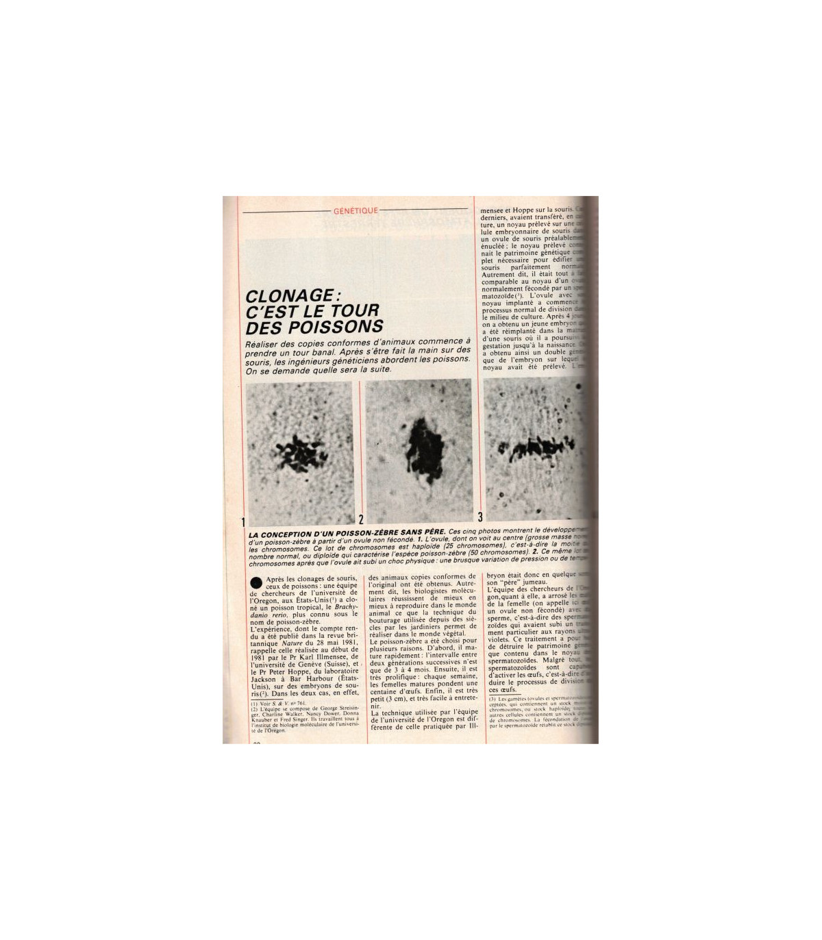 Médecine : génétique : clonage, c'est le tour des poissons : après s'être fait la main sur des souris, les ingénieurs généticiens abordent les poissons. On se demande quelle sera la suite - Génétique : les traits que nous n'héritons que de nos mères - - Dyslexie, de petites anomalies cérébrales -