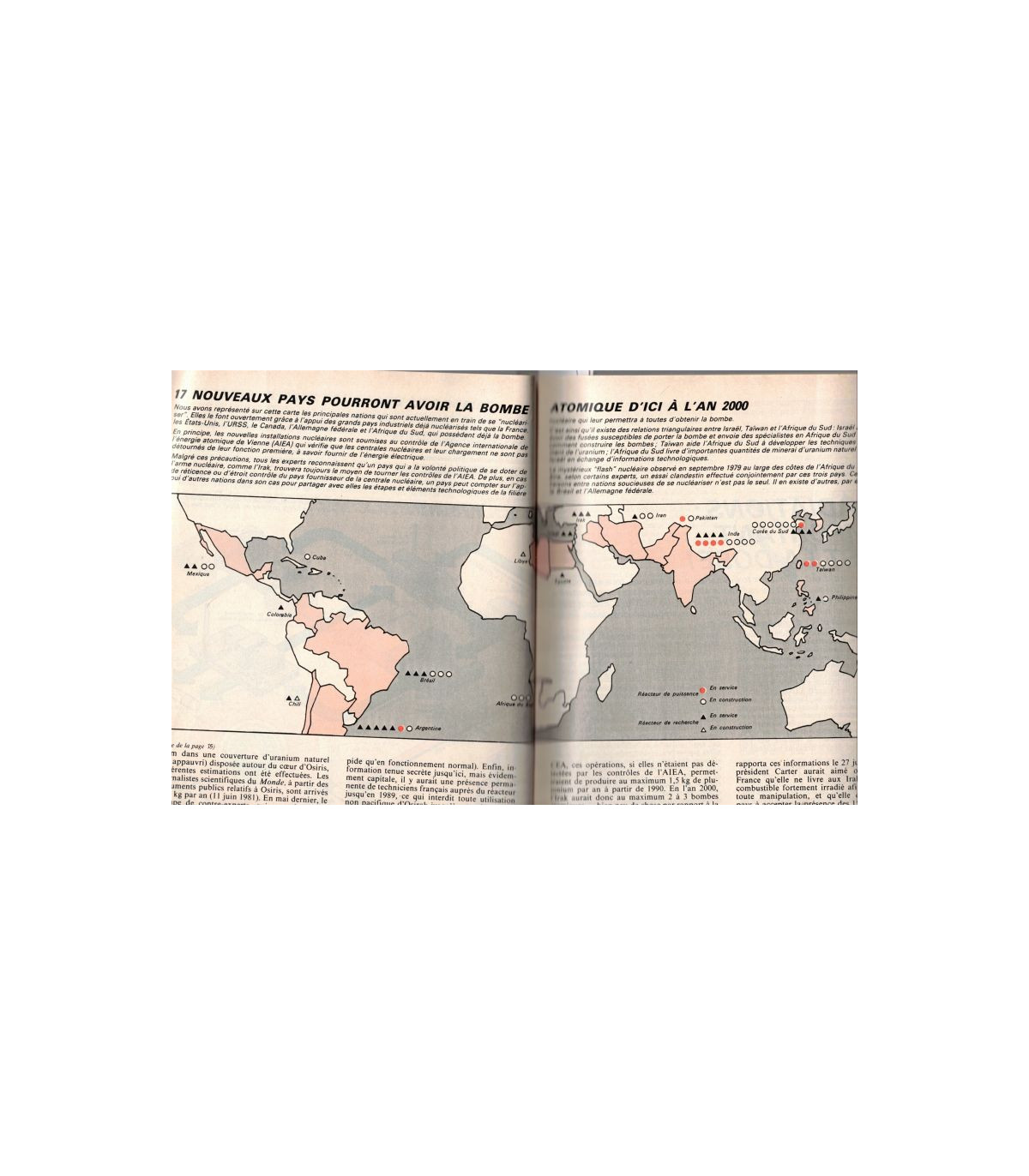 Energie nucléaire : Bombe atomique : la destruction de la centrale irakienne de Tamuz a brouillé les questions : l'Irak pouvait-il vraiment fabriquer une bombe atomique ? Sans doute, mais guère avant l'an 2000. Mais comment donc Israël, lui, a-t-il fabriqué ses bombes ? Et les autres pays qui bricolent astucieusement pour préparer leur entrée dans le "club atomique" ? 17 nouveaux pays qui pourront avoir la bombe atomique d'ici à l'an 2000 - irradiations, l'important c'est la dose -