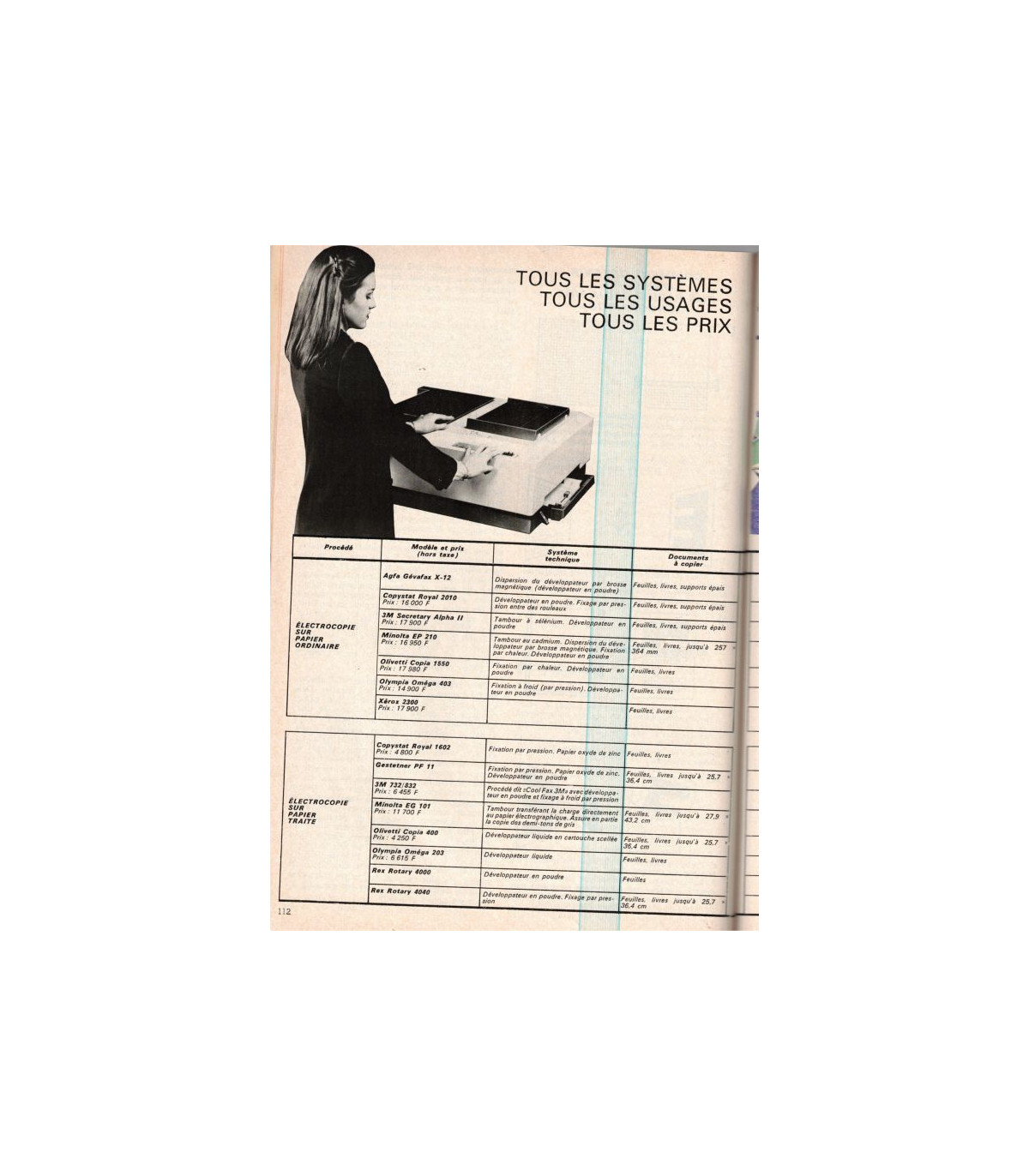 Technologie :la machine à fabriquer les champions. Pour le sportif, améliorer ses performances sans en se dopant ou en absorbant des anabolisants, l'ordinateur peut apporter une aide précieuse pour l'exercice de ses muscles et le perfectionnement rationnel de ses gestes - calculatrices programmables Hewlett ou Texas ? - ampoule électrique à la recherche des infrarouges perdus, évolution - les 9 inventions françaises les plus marquantes au Salon de Genève 1980 - Bureau: photocopieuses de bureau en 1980: si pour des raisons de coûts la photocopie en couleur reste encore au stade expérimental, les procédés électrostatiques en noir et blanc débouchent sur la reprographie sur papier ordinaire. Banc d'essai de quatre photocopieuses: reproduction en quadrichromie sur Copystat 280, par procédé d'électrocopie Rank Xerox, reproduction en noir et blanc sur 3M-Cool-Fax, sur Monolta EP-310 - Télé projecteurs pour voir la tv sur grands écrans -