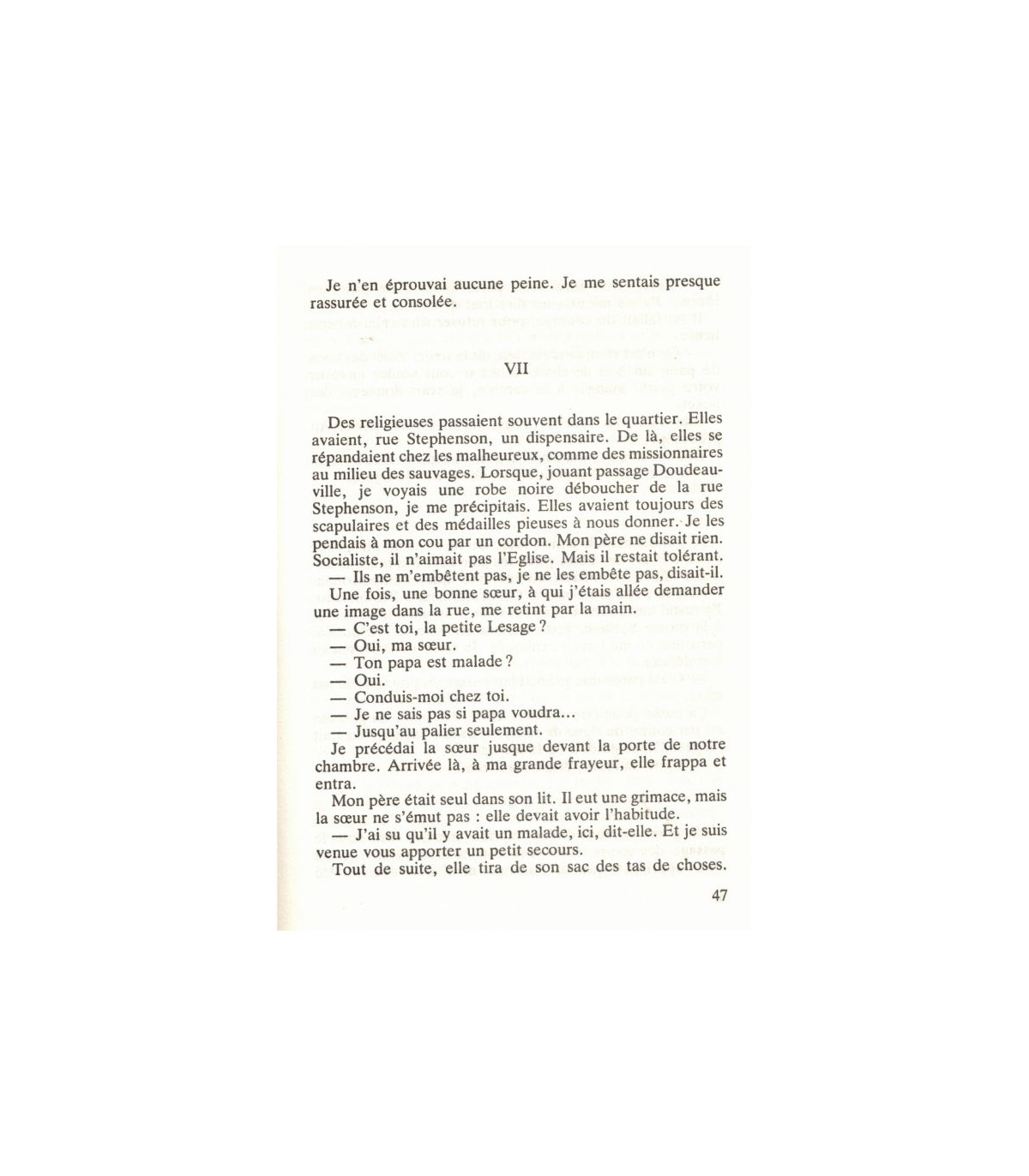 Mon père était brun, bouclé, le teint pâle, les traits réguliers, les yeux noris. Un visage de fille. Mon frère et moi lui ressemblions. A peine plus grand que ma mère, il se tenait très droit et marchait d'un pas vif, les mains dans ses goussets, sa casquette à carreaux soigneusement placée de côté sur la tête.