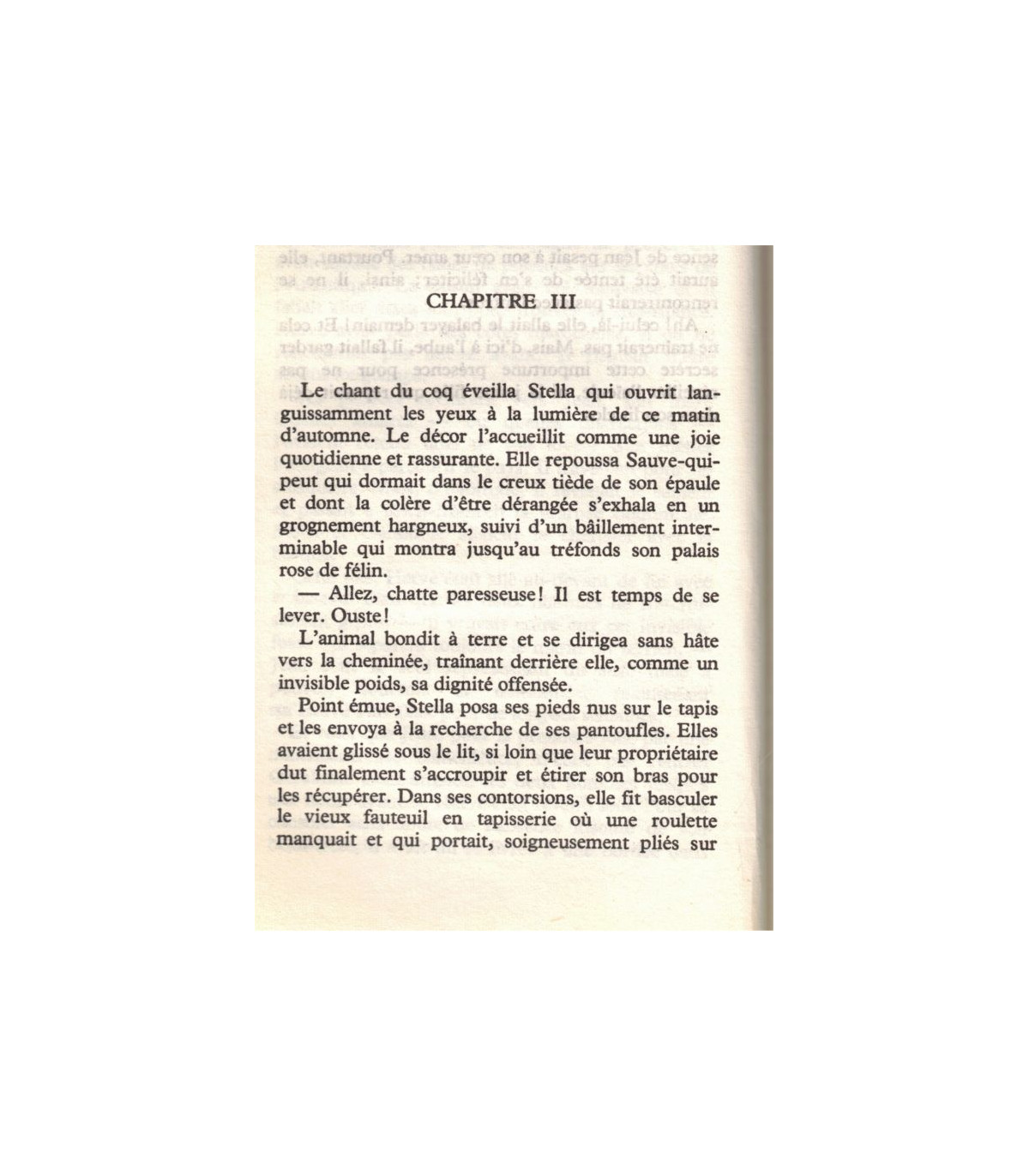 L'homme assura sa valise dans sa main et enjamba le plat-bord. La femme détacha l'amarre, sauta dans la barque à son tour et prit les rames. Il n'y eut plus que leur bruit cadencé à rythmer le silence ambiant. (...) Les yeux du passager s'habituaient de plus en plus à l'obscurité. Il remarqua les mains fines dont le dessin lui parut insolite chez une paysanne accoutumée à ce rude métier de passeur.