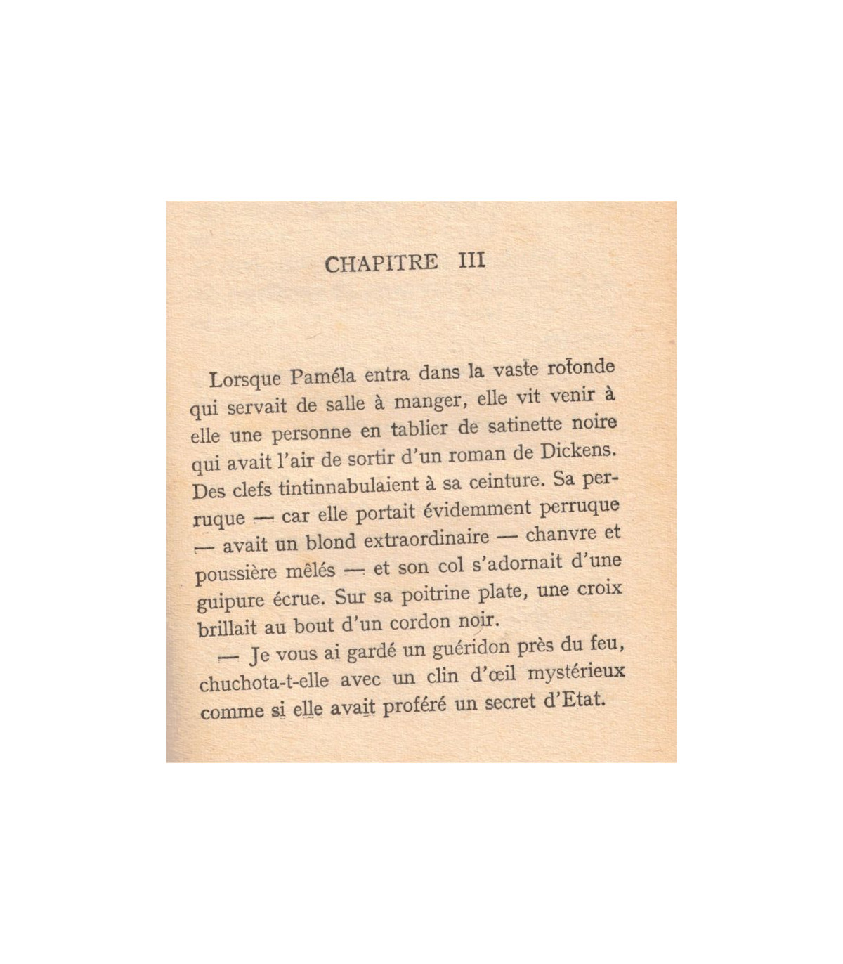 Il se saisit du papier malencontreux et, aussitôt rassuré, sourit. - Ce n'est pas un procès-verbal. C'est une réclame d'hôtel. Ils ont de la méthode, dans ce pays. (...) Elle lut tout haut, d'une voix enjouée et pleine d'allégresse : "A 14 kilomètres, Manoir des Chênes, hôtes payants, panorama splendide sur la forêt. Prendre la direction de Saint-Gingolph."