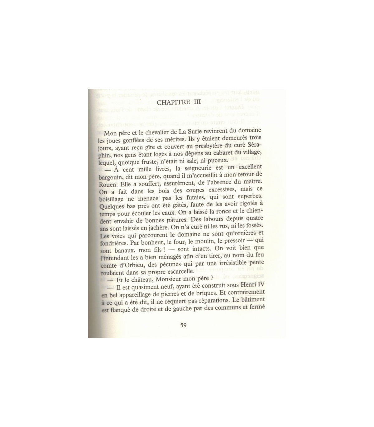 Le jeune Pierre-Emmanuel de Siorac, narrateur-témoin de ces Mémoires, a participé au complot, et Louis XIII l'en récompense en faisant revivre pour lui le comté d'Orbieu. Le contraste est grand entre la vie de Cour, brillante et oisive, et celle des laboureurs du "plat pays" qui, écrasés d'impôts, survivent comme ils peuvent. Fidèle à la tradition périgourdine de ses ancêtres, le nouveau comte, dès que le roi lui consent un congé, court retrouver Orbieu. Il s'efforcer d'être "bon ménager" de son domaine et, pour les mieux comprendre, apprend la "parladure" de ses manants.