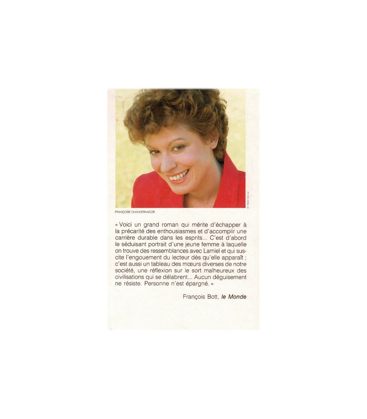 La Sans Pareille Françoise Chandernagor - Leçons de ténèbres tome 1 - Avec onze pages biographiques illustrées de photographies. Premier volume d'une grande trilogie romanesque, La Sans Pareille nous conte les débuts de Christine Valbray. De celle qui fut l'une des plus célèbres égéries de la vie politique française, que sait le public ? Que sa vie fut courte et tragique. Qu'on lui avait donné le surnom de Sans Pareille parce qu'elle avait la beauté altière et triomphante d'une fameuse courtisane florentine. Que tout Paris - le Tout-Paris des arts, du journalisme et de la finance - croyait bien connaitre cette carriériste désinvolte et dut avouer qu'il s'était trompé. Qu'aujourd'hui, enfin, sept ans après un scandale et un procès qui firent trembler la classe politique, elle est retournée à l'oubli sans avoir livré son secret. Des banlieues populaires aux palais romains, des cercles de jeux aux soirées échangistes, et des amphis gauchistes aux alcôves ministérielles, nous assistons ici aux premiers pas d'une ascension dont la rapidité surprit les observateurs. Premiers pas, ou premiers faux pas ? éditions France Loisirs 1989 - #leçons de ténèbres, #Christine Valbray, #aventurière, #égérie vie politique,