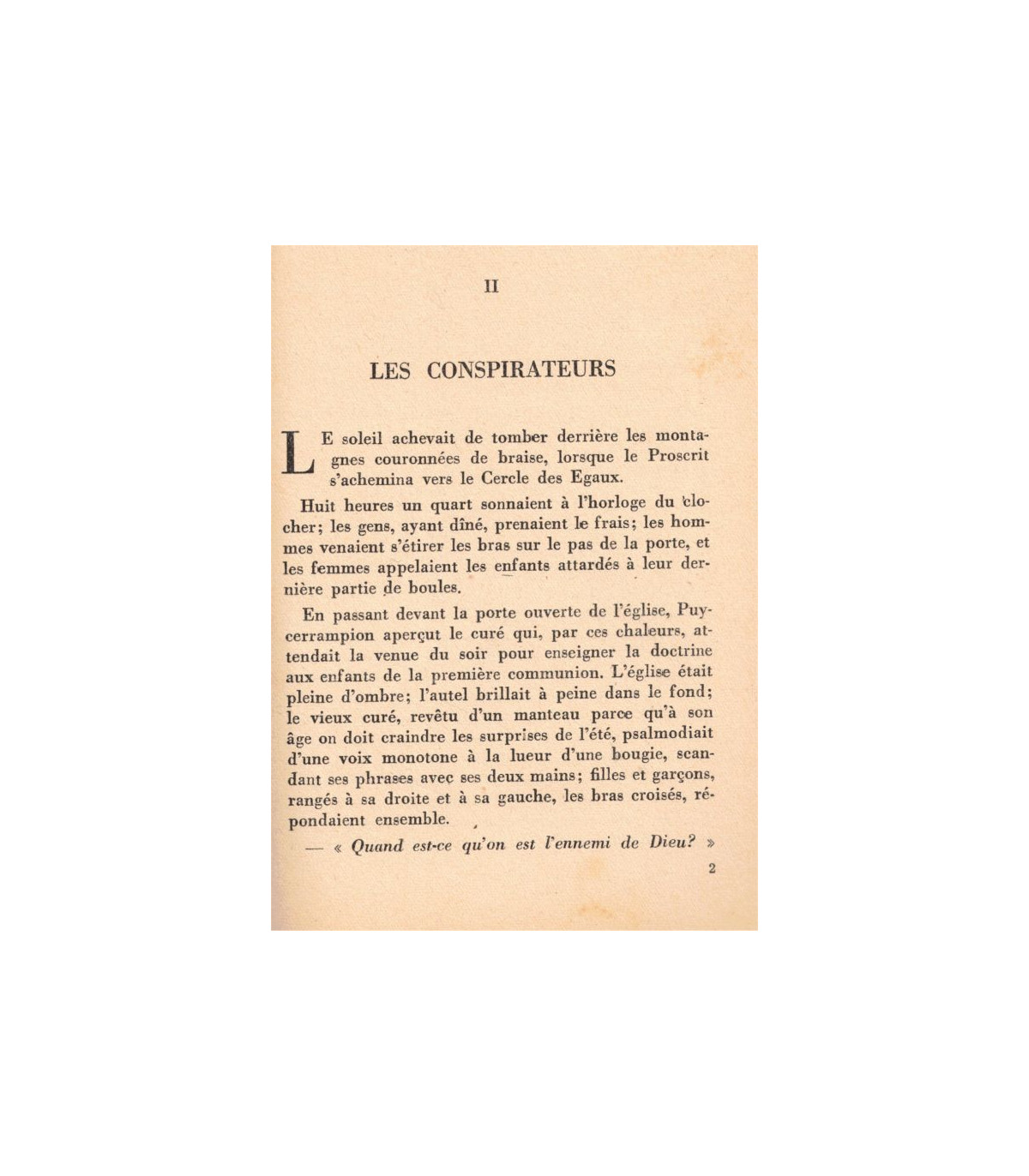 Les étrangers, en train de prendre leur café sous la véranda de l'Hôtel de Provence, demandaient : - Quel est donc ce vieux ? - Oh ! celui-là, il a souffert ! répondait Irène qui les servait. C'est le Proscrit."