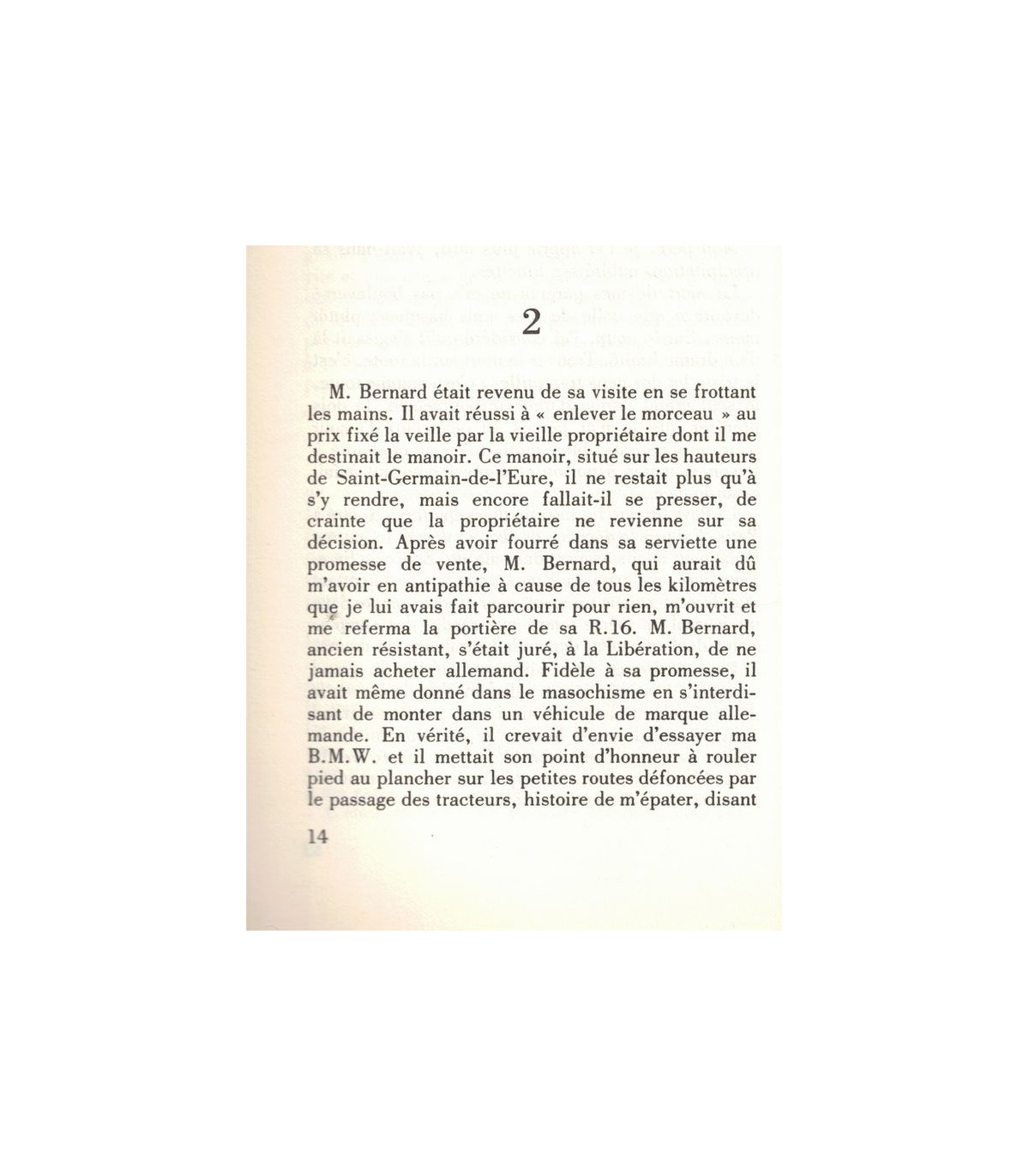 André Floch est grand reporter. Il a trente-six ans. Blessé au cours de son dernier voyage, contraint au repos, il décide d'en profiter pour prendre du recul et tenter d'écrire un livre, "son" livre. Il cherche une propriété tranquille et la trouve : en Normandie, un manoir isolé, au bout d'une vaste prairie, avec des écuries, une grange.
