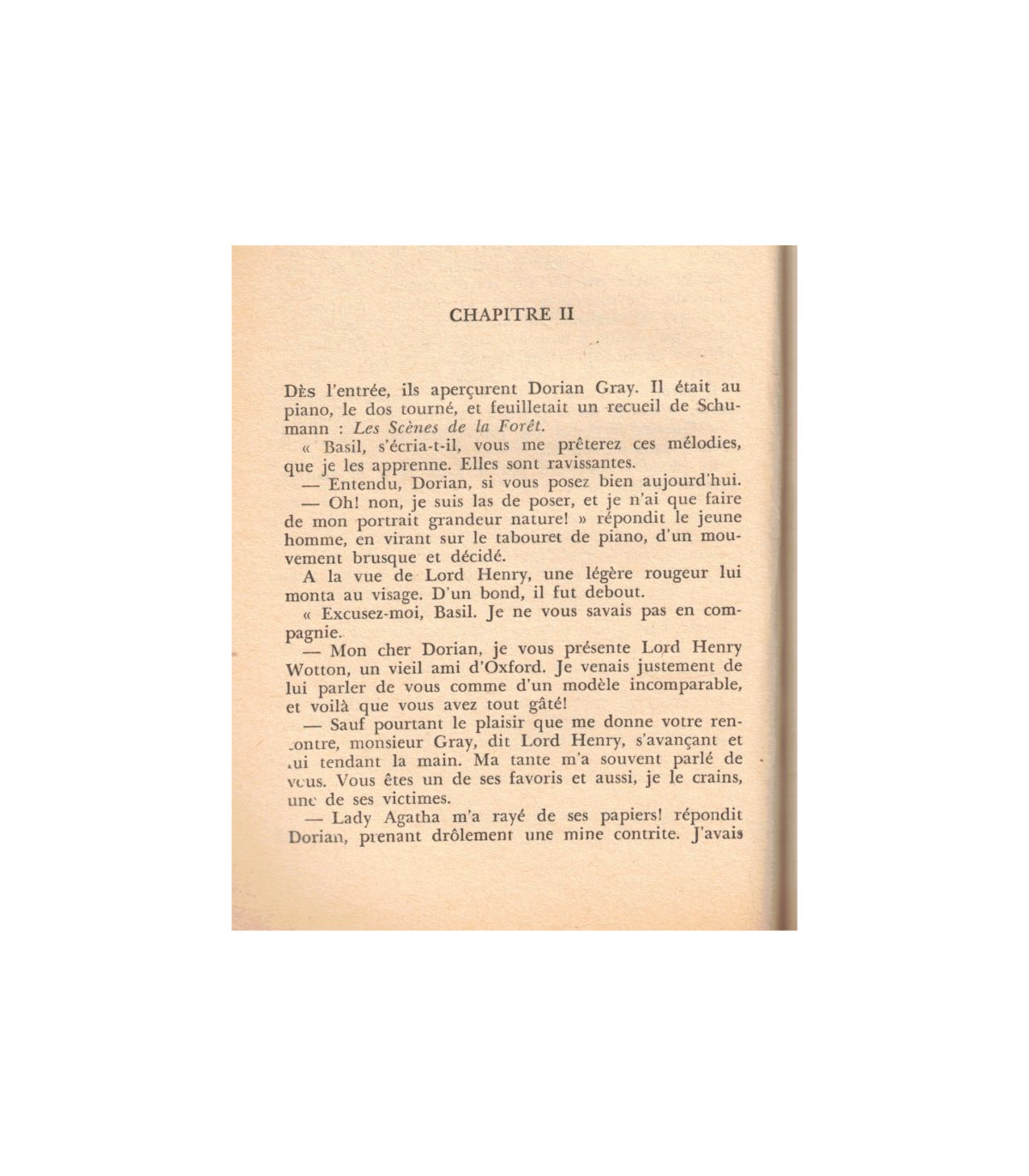 Du coin de sofa où il était allongé sur des coussins de cuir persan, et tout en fumant, selon son habitude, d'innombrables cigarettes, Lord Henry Wotton apercevait la rayonnant floraison d'un cytise, dont les grappes de miel et les flexibles rameaux semblaient écrasés sous le poids flamboyant de leur propre beauté.