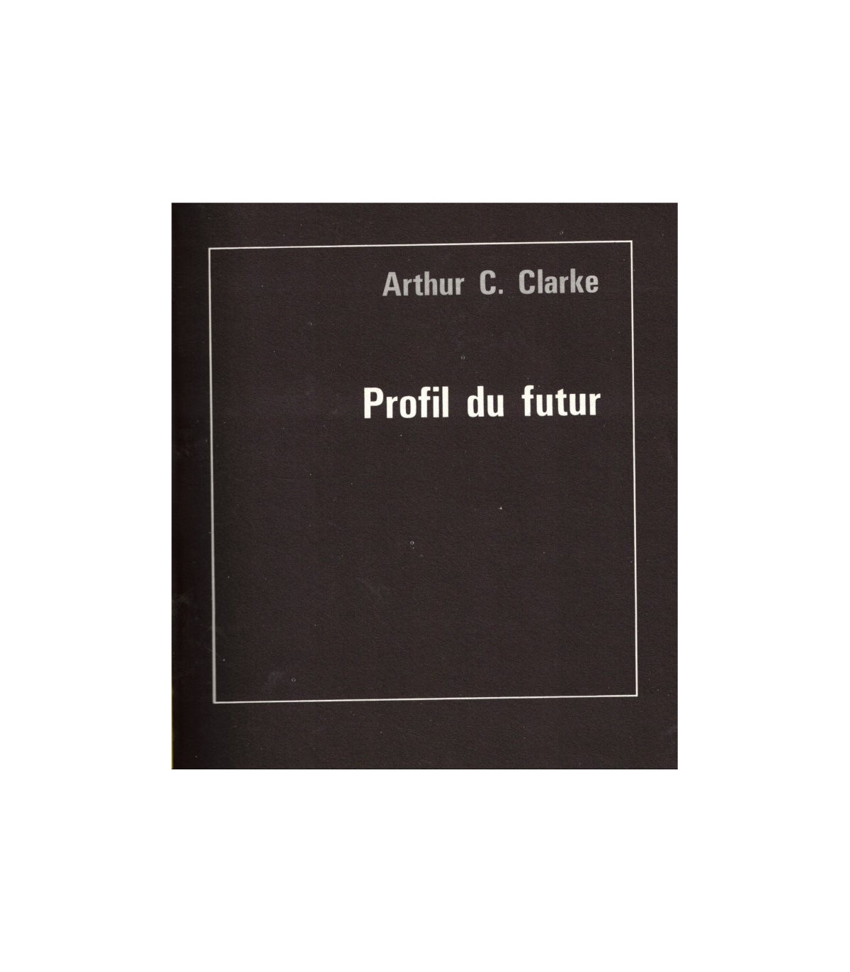 Profil du futur, Arthur Clarke - collection Encyclopédie Planète, de la Revue Planète - l'explosion de l'Humanité - une contrée inexplorée, l'avenir - les prophètes malheureux - le refus de l'avenir - l'avenir des transports - le transport sur coussin d'air - au-delà de la pesanteur - la conquête de la vitesse - le monde sans la distance - au-delà de l'inconnu terrestre - de la Terre au Soleil - l'espace invincible - la hantise du temps - les triomphes de la technique - la fin de la disette - l'homme invisible - le chemin de Lilliput - informations et télécommunications de demain - le cerveau, cet inconnu - désuétude de l'homme - le long crépuscule - tableau du futur.