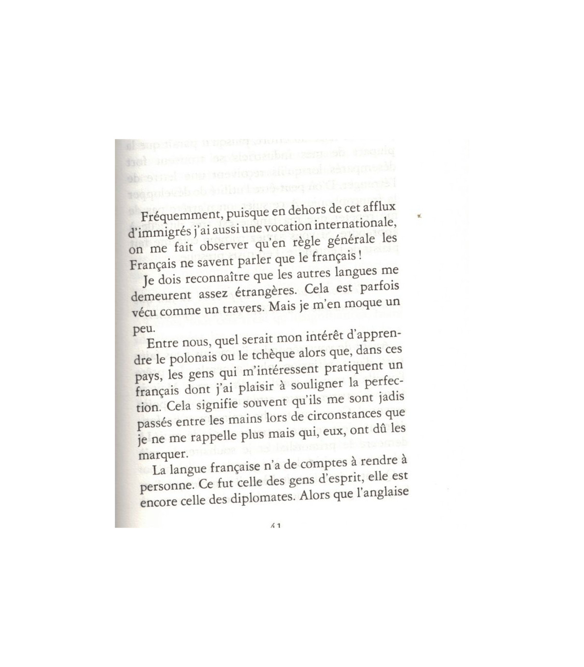 Je n'en demeure pas moins le pays de la mesure et représente toujours, pour le monde entier, la douceur de vivre. Et même s'il est exact que je cafouille comme aujourd'hui, je possède encore l'énorme privilège de pouvoir crier ma rage et hurler que l'on m'assassine. J'ai tant à dire..