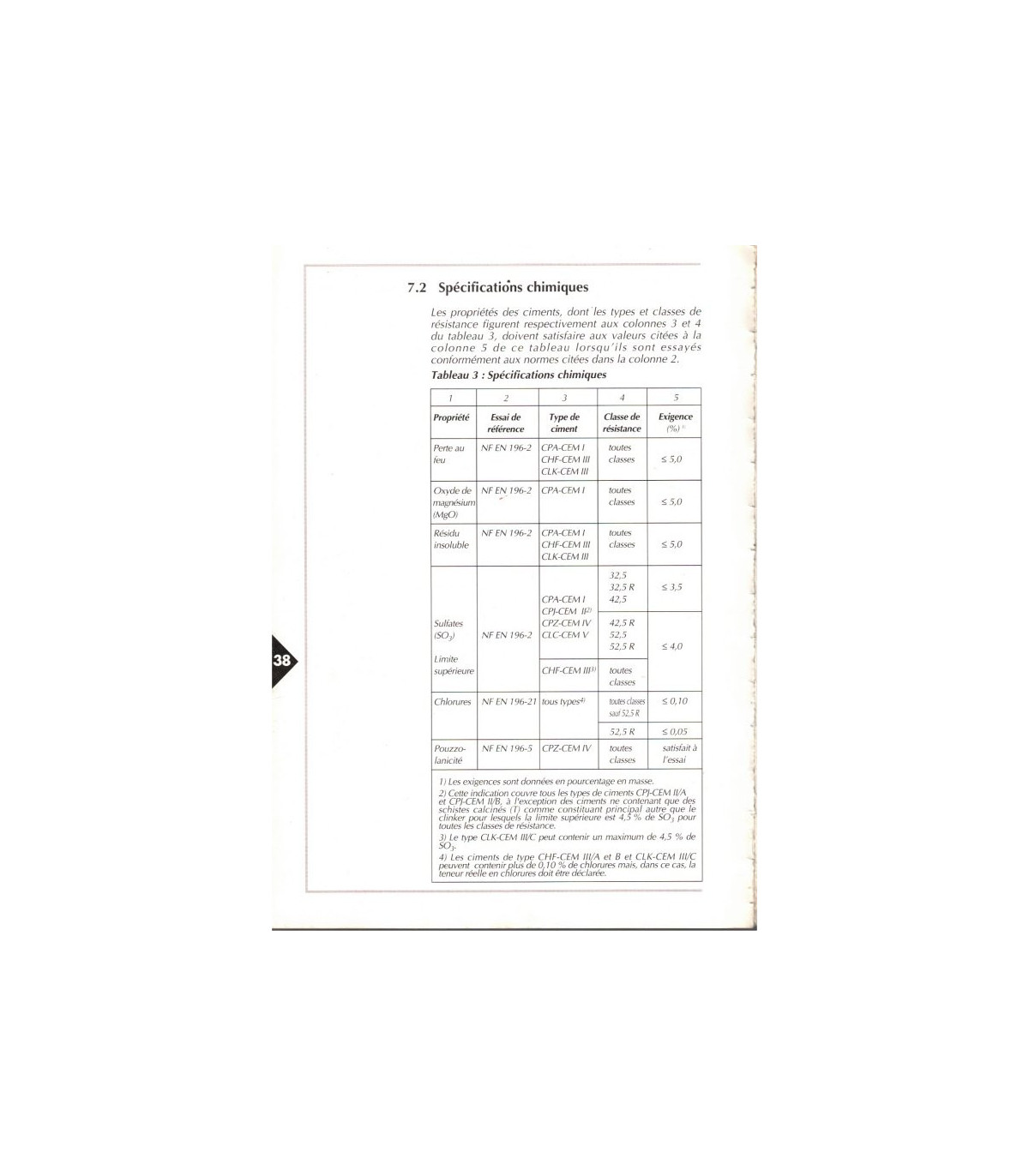 La normalisation française des ciments 1994, CIM béton - Centre d'information sur le ciment et ses applications - comparaison entre la norme française de 1981 et la norme française de 1994 - les différences - le passage d'une norme à l'autre - la comparaison : les constituants, les critères de conformité, les caractéristiques physiques et chimiques, le autres ciments, les désignations normalisées, les classes de résistance, les types de ciment. #matériaux de construction, béton, maçonnerie, construction, législation bâtiment, livres techniques.